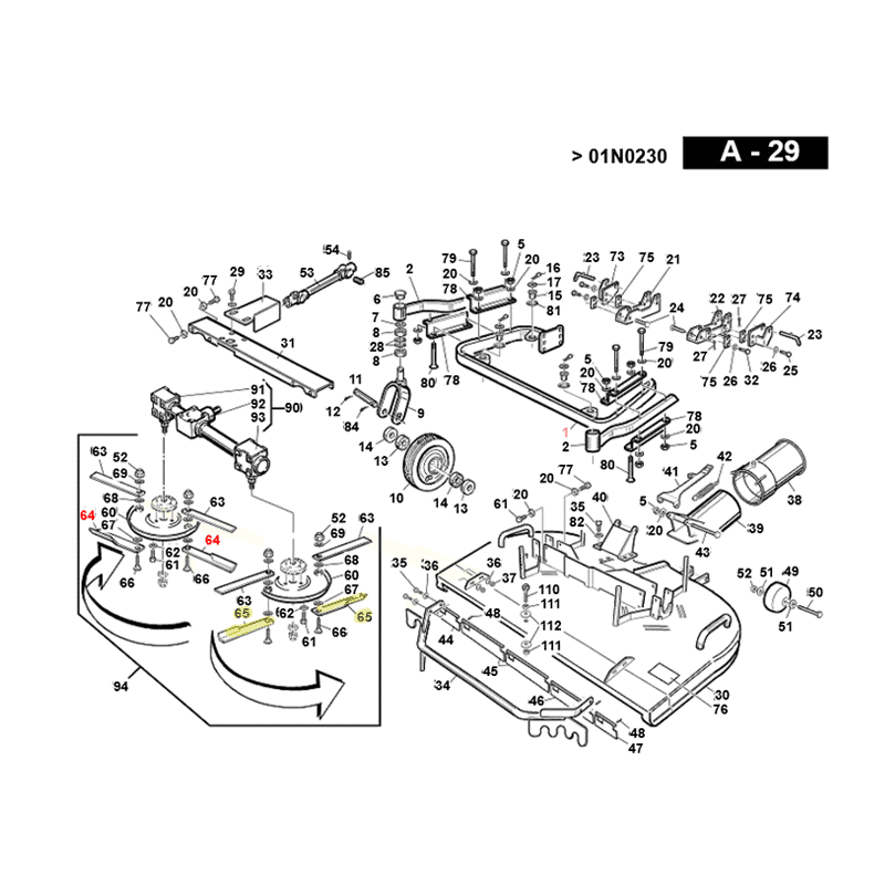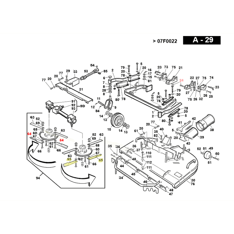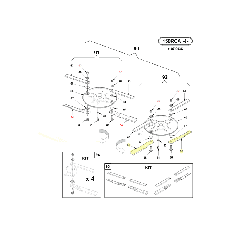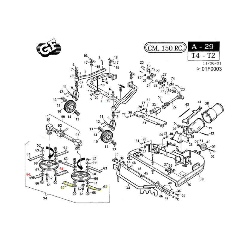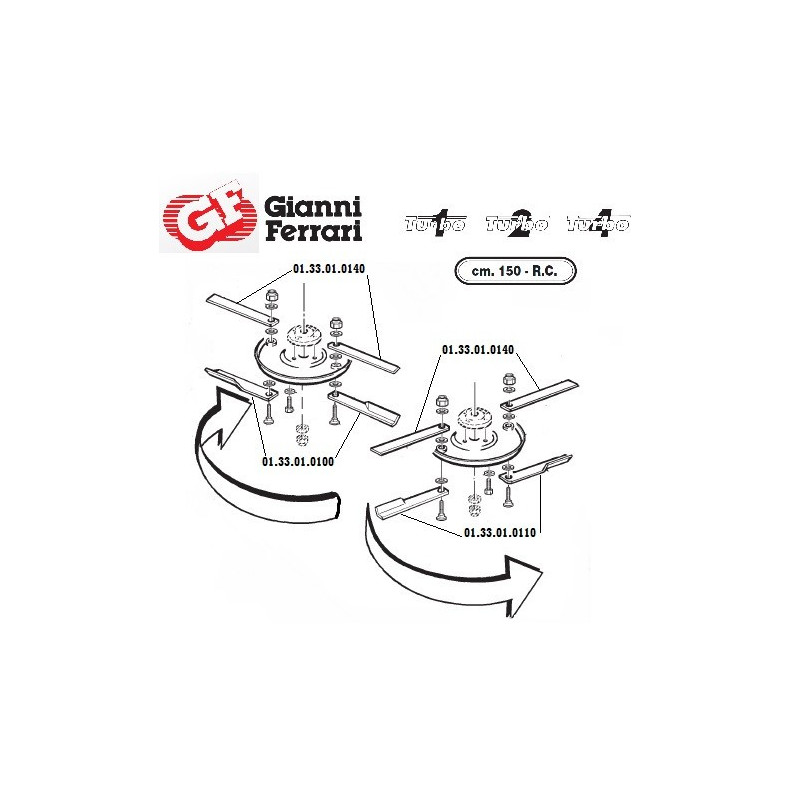 Lame ventilée lame côté gauche pour tondeuses auto-portées Gianni Ferrari avec coupe 150RC et 150RCA Couteau vendu à l'unité Référence Gianni Ferrari 01.33.01.0110