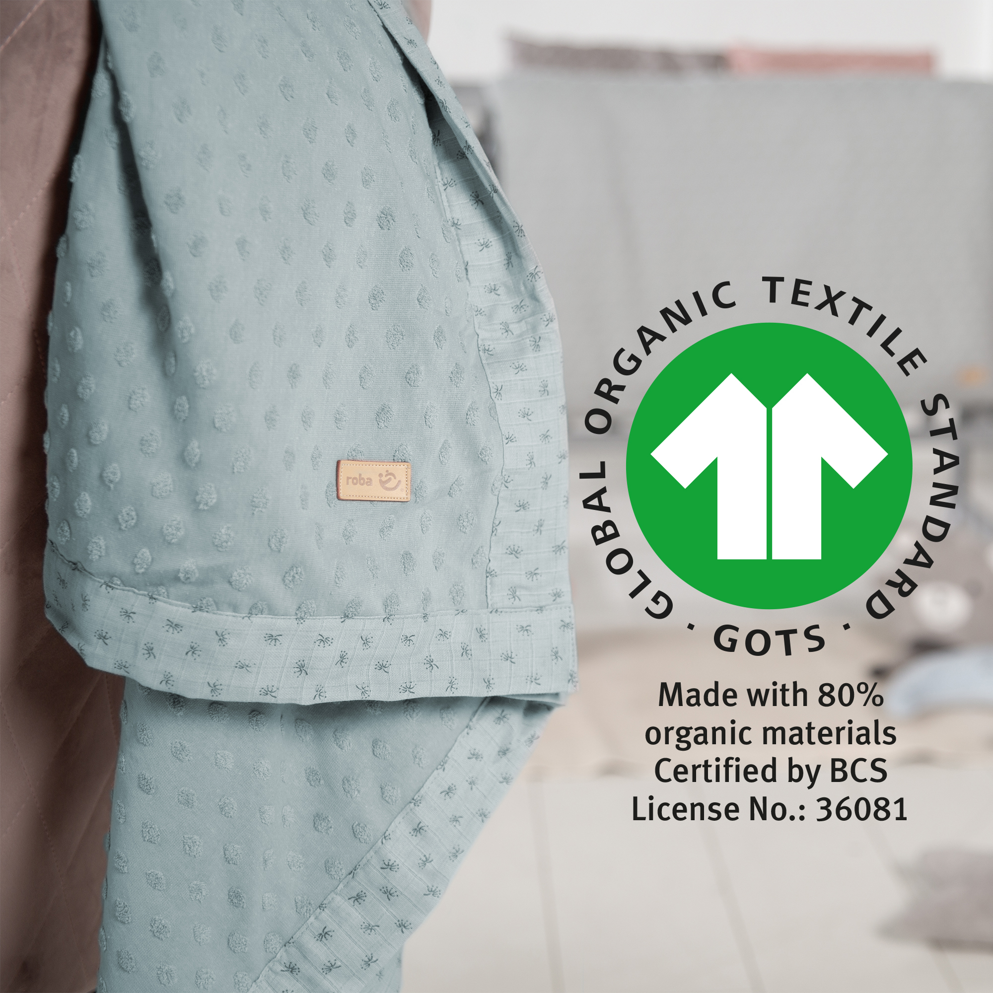 Avec son tissu en coton biologique extra doux, non toxique et respectueux de la peau, la couverture pour bébé roba "Lil Planet" bleu clair (80 x 80 cm) procure un sentiment de sécurité dans le lit de bébé. Nous n'utilisons que des matériaux durables les plus purs, non traités et respirants pour cette couverture pour bébé afin d'éviter la surchauffe. Grâce au traitement spécial de la surface et au prélavage, la couverture pour bébé reste super douce. Nos produits biologiques pour bébé "Lil Planet" conservent leur forme et leur qualité super douce même après plusieurs lavages. En plus de conserver leurs formes après plusieurs lavage, la série de textiles est produite de manière durable selon le Global Organic Textile Standard et est certifiée selon les critères écologiques les plus stricts avec l'OEKO TEX® Standard 100. La couverture pour bébé est lavable à 40°C. Face supérieure : A pois 80 % coton bio (Certifié GOTS), 20 % polyester, face inférieure : mousseline 100 % coton bio. Couleur : bleu clair.