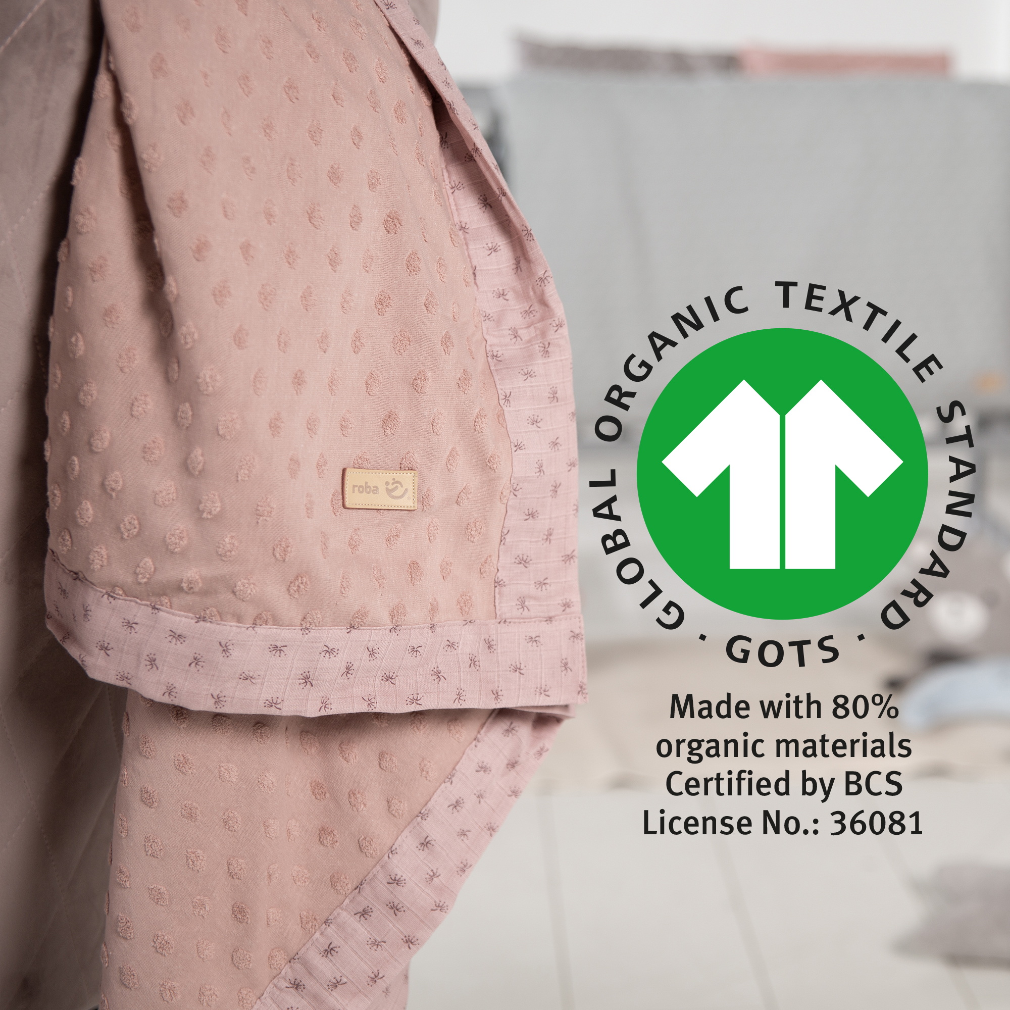 Avec son tissu en coton biologique extra doux, non toxique et respectueux de la peau, la couverture pour bébé roba "Lil Planet" rose (80 x 80 cm) procure un sentiment de sécurité dans le lit de bébé. Nous n'utilisons que des matériaux durables les plus purs, non traités et respirants pour cette couverture pour bébé afin d'éviter la surchauffe. Grâce au traitement spécial de la surface et au prélavage, la couverture pour bébé reste super douce. Nos produits biologiques pour bébé "Lil Planet" conservent leur forme et leur qualité super douce même après plusieurs lavages. En plus de conserver leurs formes après plusieurs lavage, la série de textiles est produite de manière durable selon le Global Organic Textile Standard et est certifiée selon les critères écologiques les plus stricts avec l'OEKO TEX® Standard 100. La couverture pour bébé est lavable à 40°C. Face supérieure : A pois 80 % coton bio (Certifié GOTS), 20 % polyester, face inférieure : mousseline 100 % coton bio. Couleur : rose.