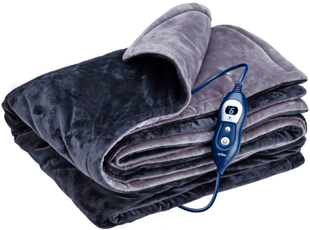 couverture chauffante avec 6 niveaux de température 180 X 140 cm bleu gris