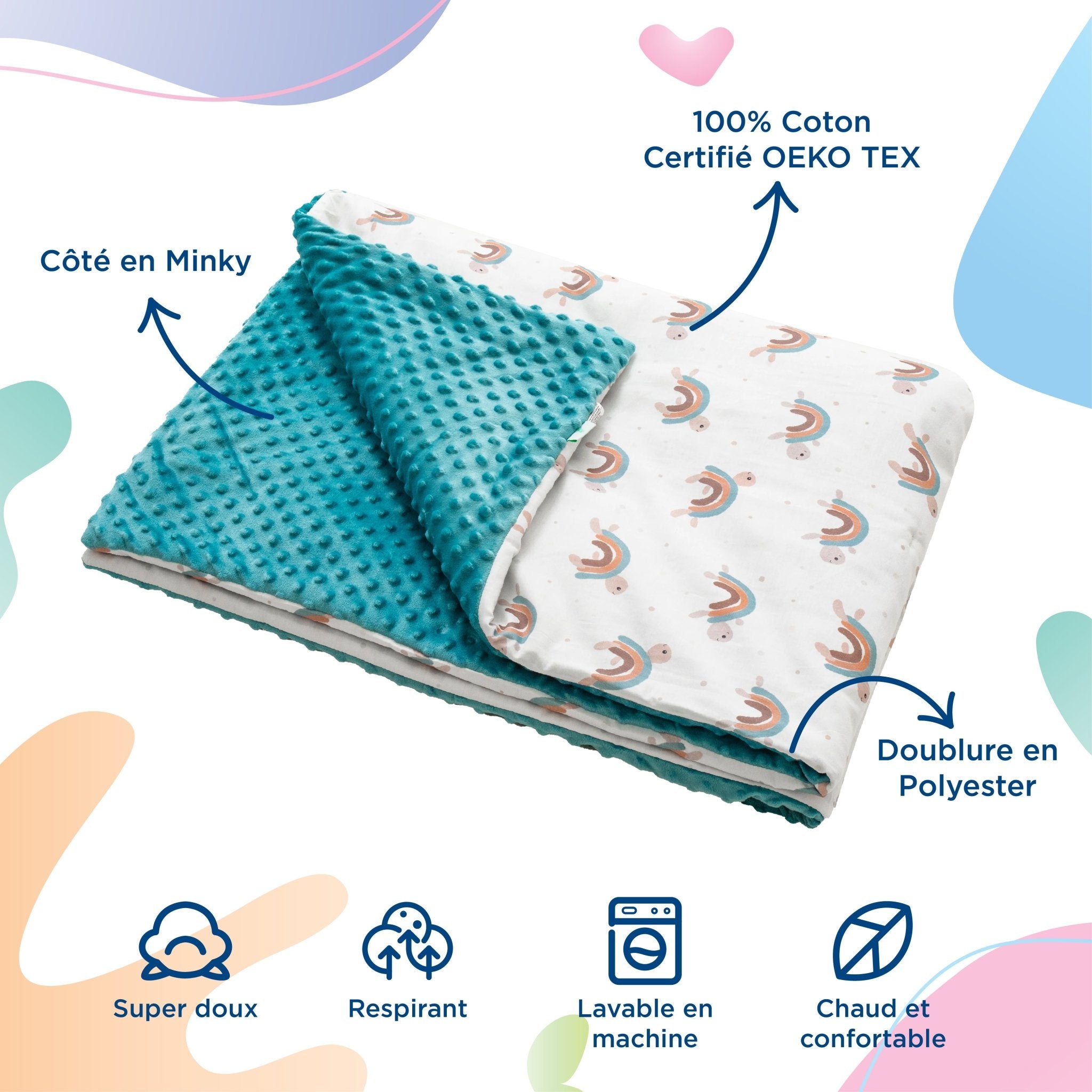 | Composition (textile) | Face A : 100% Coton certifié Oeko-Tex Face B : 100% Minky |