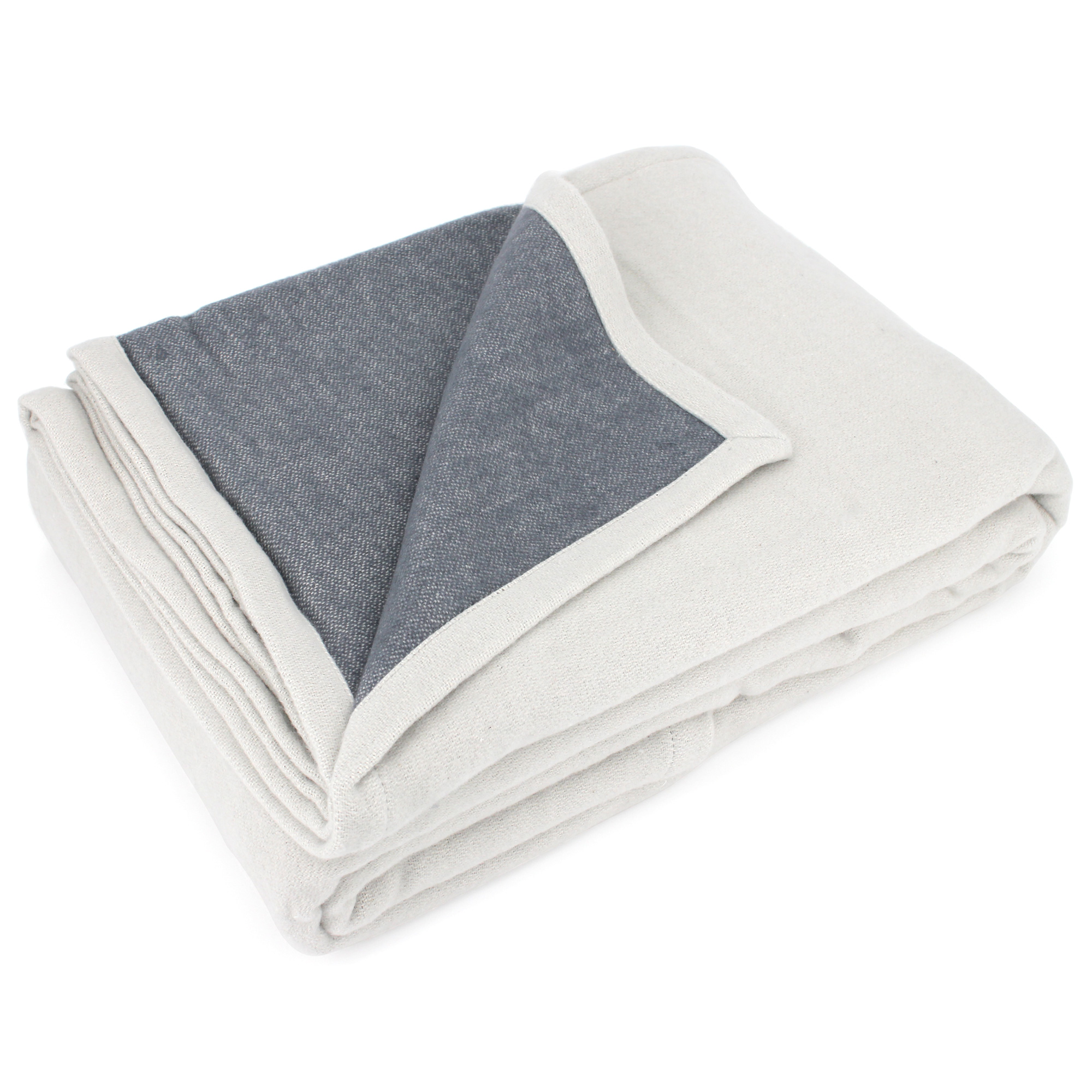 Couverture été 220x240 cm coton 260 g/m2 PROVENCE bicolore gris perle/acier