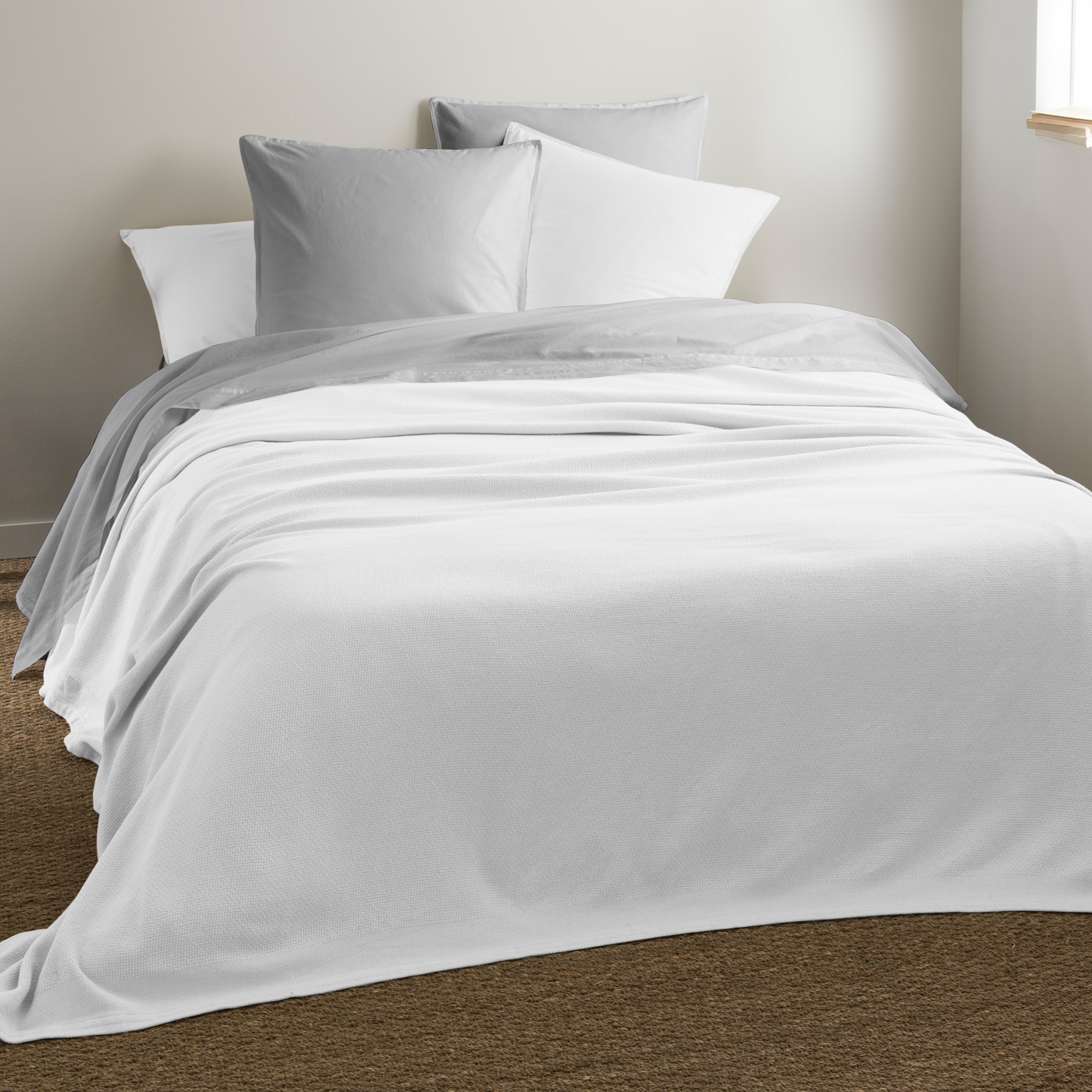 | Plus produit | Couverture légère d'été RIVIERA 240x260cm blanc 100% coton 365g/m2, avec finition ourlet et coins capuchons - Fabriquée en Europe |