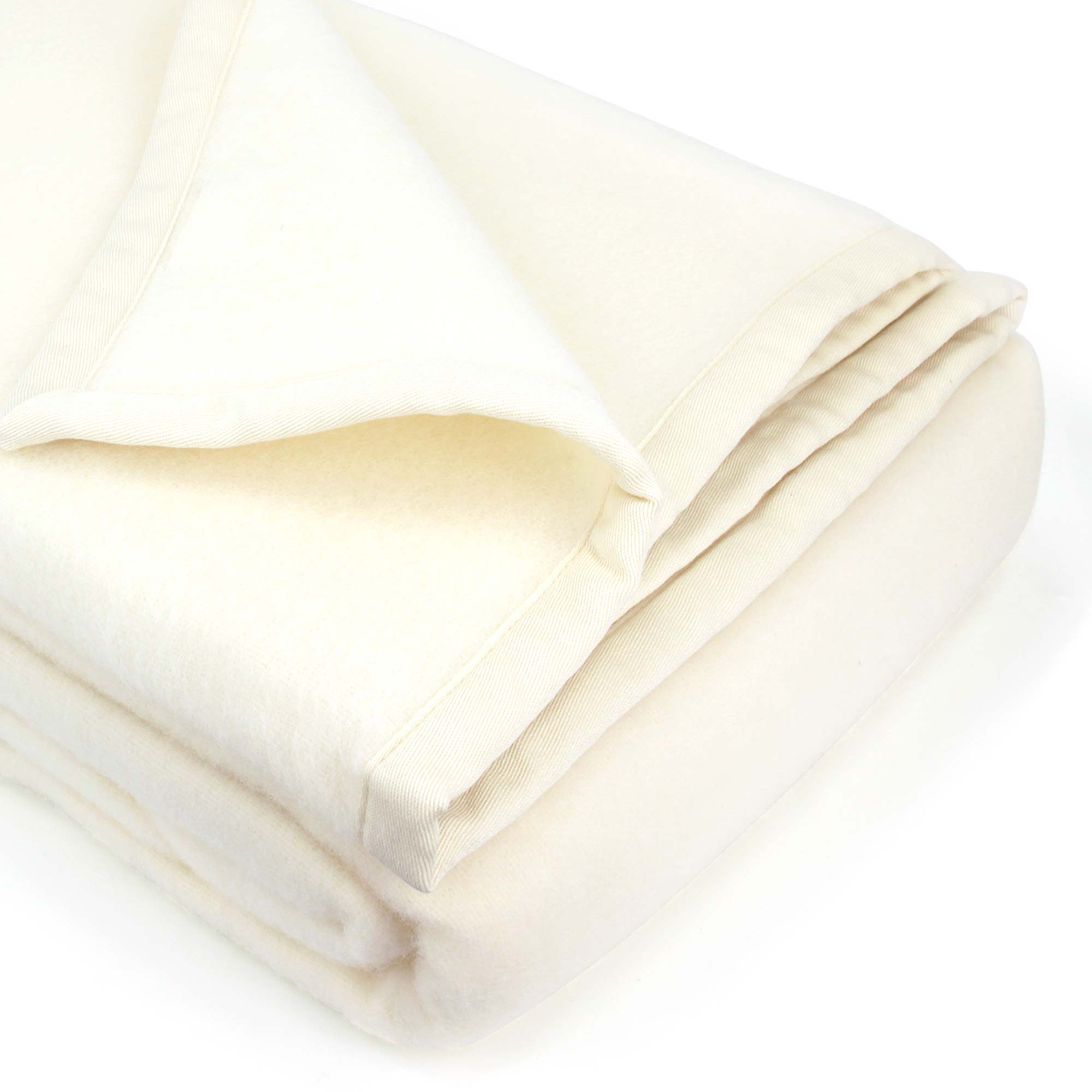 | Plus produit | Couverture VICTORIA 240x260cm pure laine lambswool 360 g/m2, Finition ruban sergé - Coloris Naturel - Fabriqué en Europe |