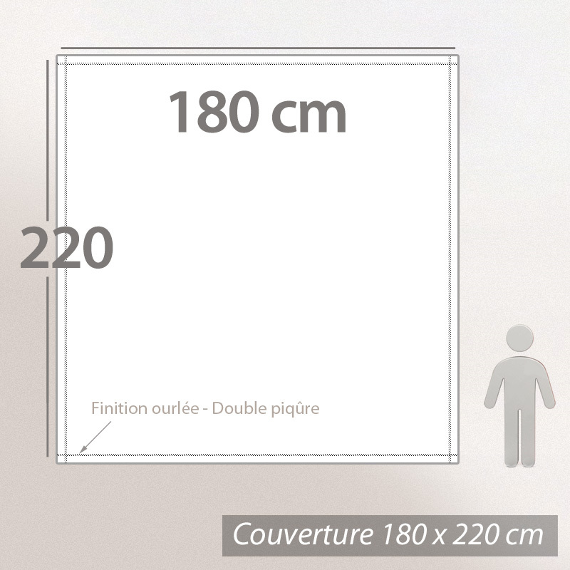| Tailles (linge de lit) | 180 x 220 cm |