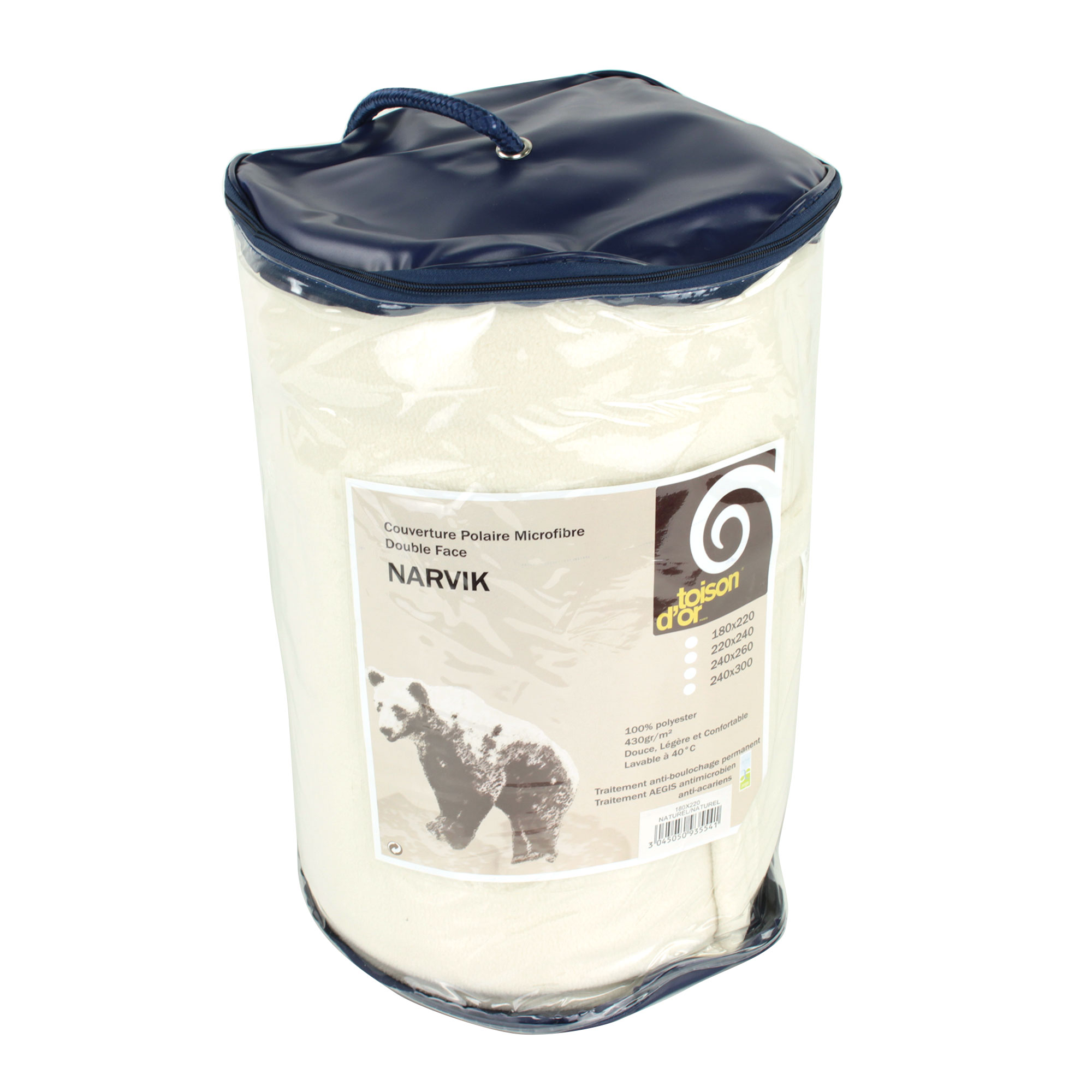 | Libellé | Couverture polaire luxe 180x220 cm 100% polyester 430 g/m2 NARVIK Blanc Naturel |