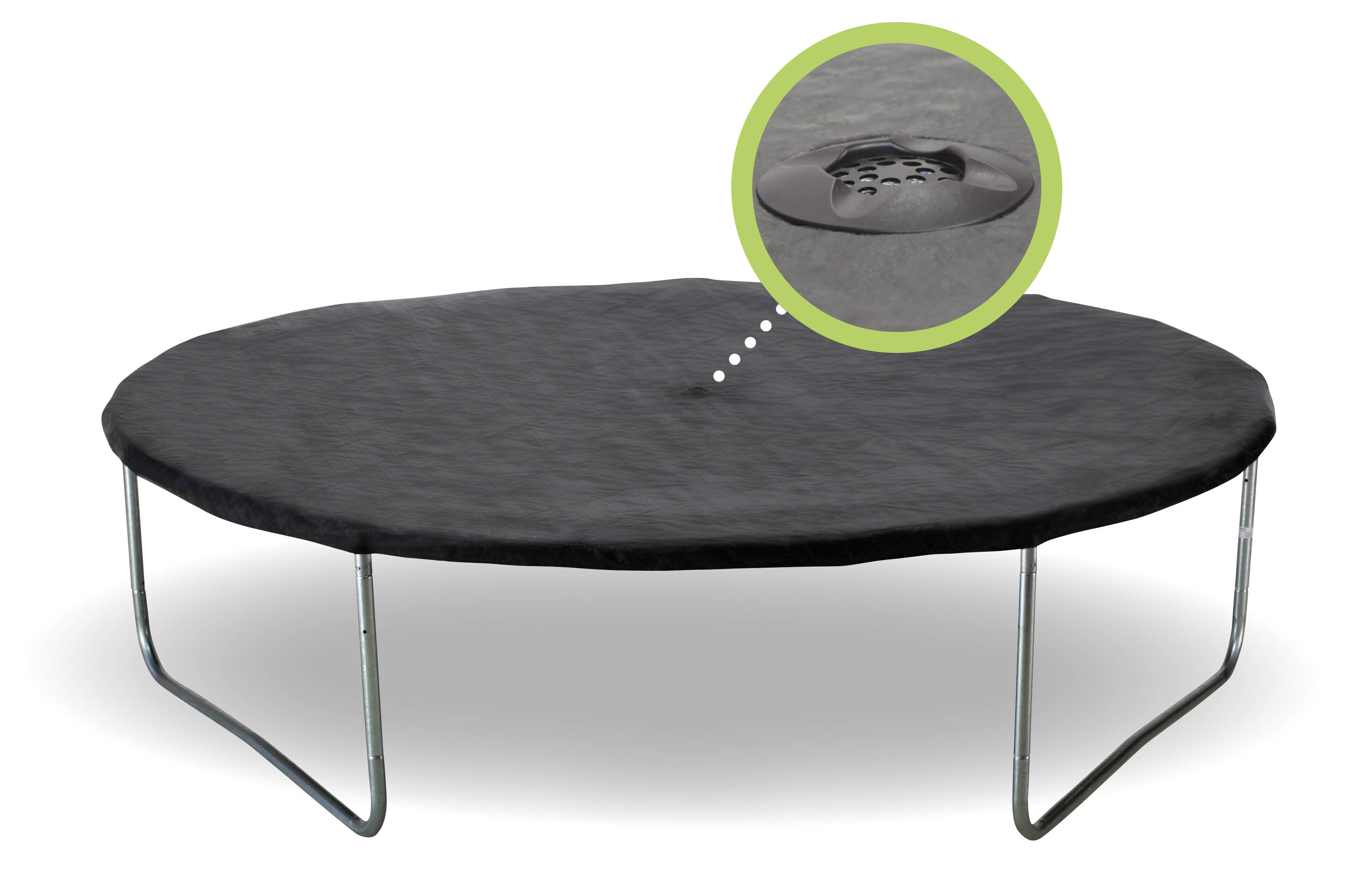 Plus produit Couverture de propreté noire conçue pour trampoline diamètre 2.44 à 2.50m. Elle assure la propreté des tapis de saut, coussin et éventuellement filet si vous le décrochez et le placer sous cette couverture.