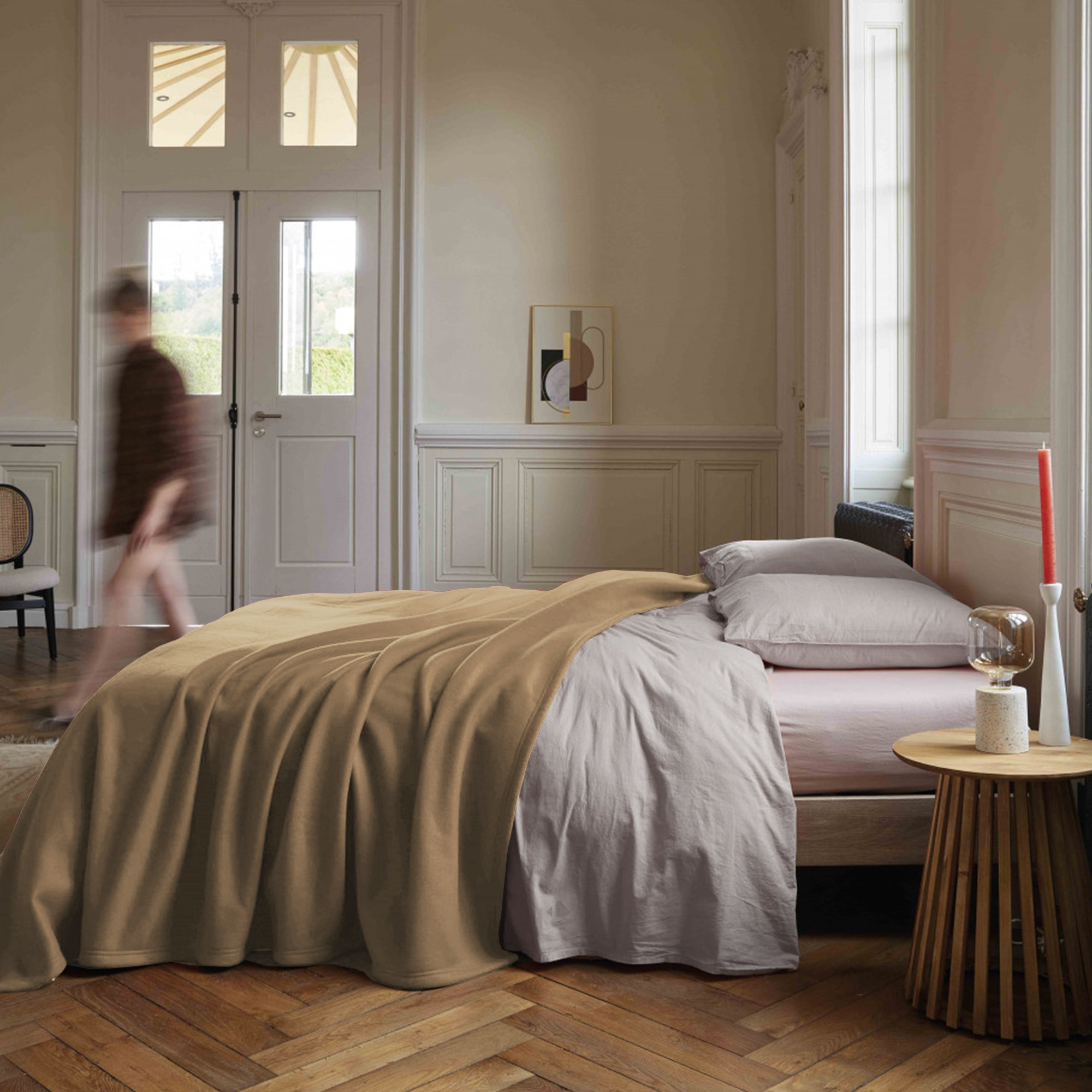 COUVERTURE POLAIRE 240x300 cm POLYESTER 350 g/m2 - TEDDY MARRON SABLE