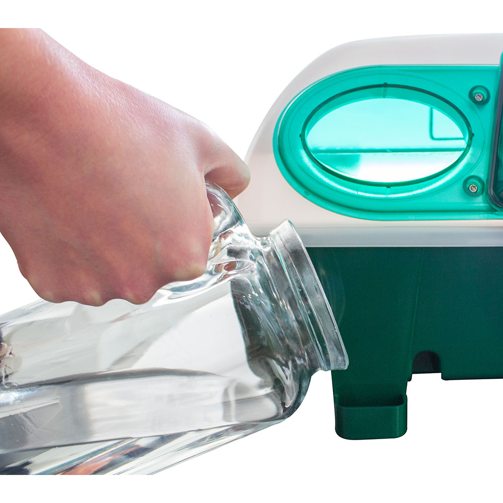 Afin d'éviter la dispersion de la chaleur et de l'humidité, le système d'alvéoles et le panier oscillant sont activés grâce au moteur OVOMATIC qui permet de retourner ces derniers et de régler l'inclinaison. De plus, la couveuse Egg Tech 24 est munie de bouches permettant de remplir le bac d'eau sans ouvrir son couvercle.