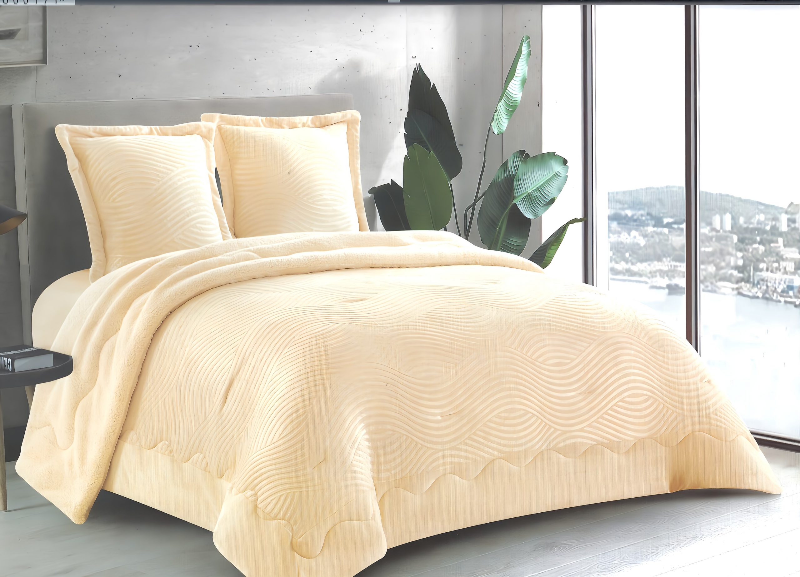 Couvre-lit Double face Sherpa – Lit 2 places – 3 pièces (220x240cm) - 550 g/m2 - Beige