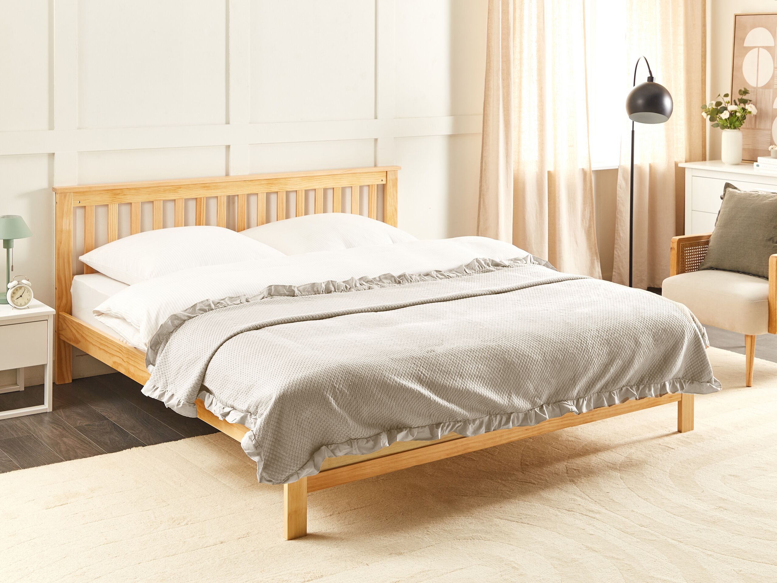 Couvre-lit à froufrous. Ajoutez une touche de luxe à votre chambre à coucher avec notre couvre-lit à froufrous. Fabriqué en coton durable et facile d'entretien, ce couvre-lit doux garantit une nuit de sommeil respirante et confortable. Les froufrous délicats ajoutent une touche élégante, parfaite pour embellir la chambre à coucher. Parfaitement adapté à une utilisation tout au long de l'année.