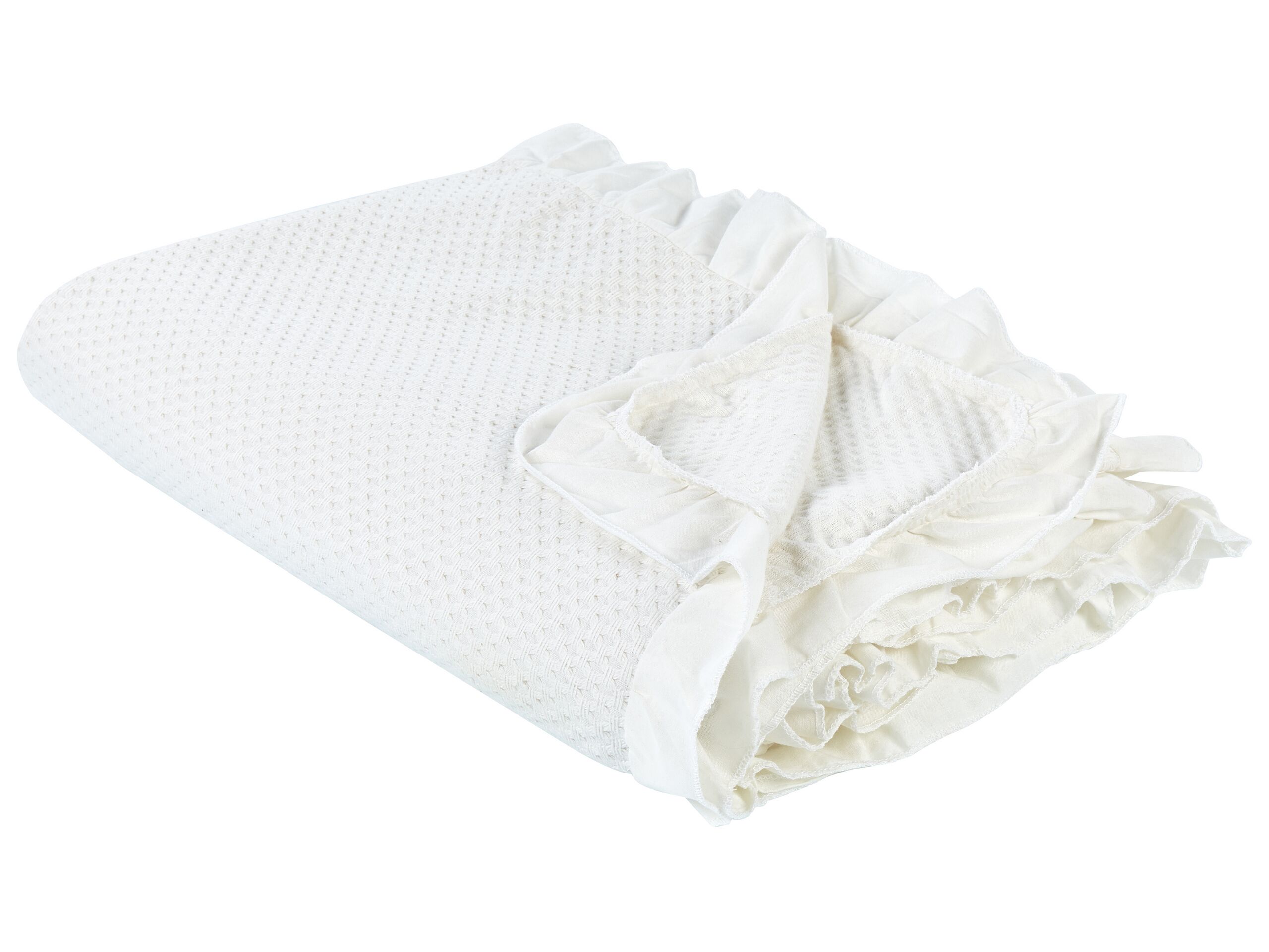 Couvre-lit à froufrous. Ajoutez une touche de luxe à votre chambre à coucher avec notre couvre-lit à froufrous. Fabriqué en coton durable et facile d'entretien, ce couvre-lit doux garantit une nuit de sommeil respirante et confortable. Les froufrous délicats ajoutent une touche élégante, parfaite pour embellir la chambre à coucher. Parfaitement adapté à une utilisation tout au long de l'année.