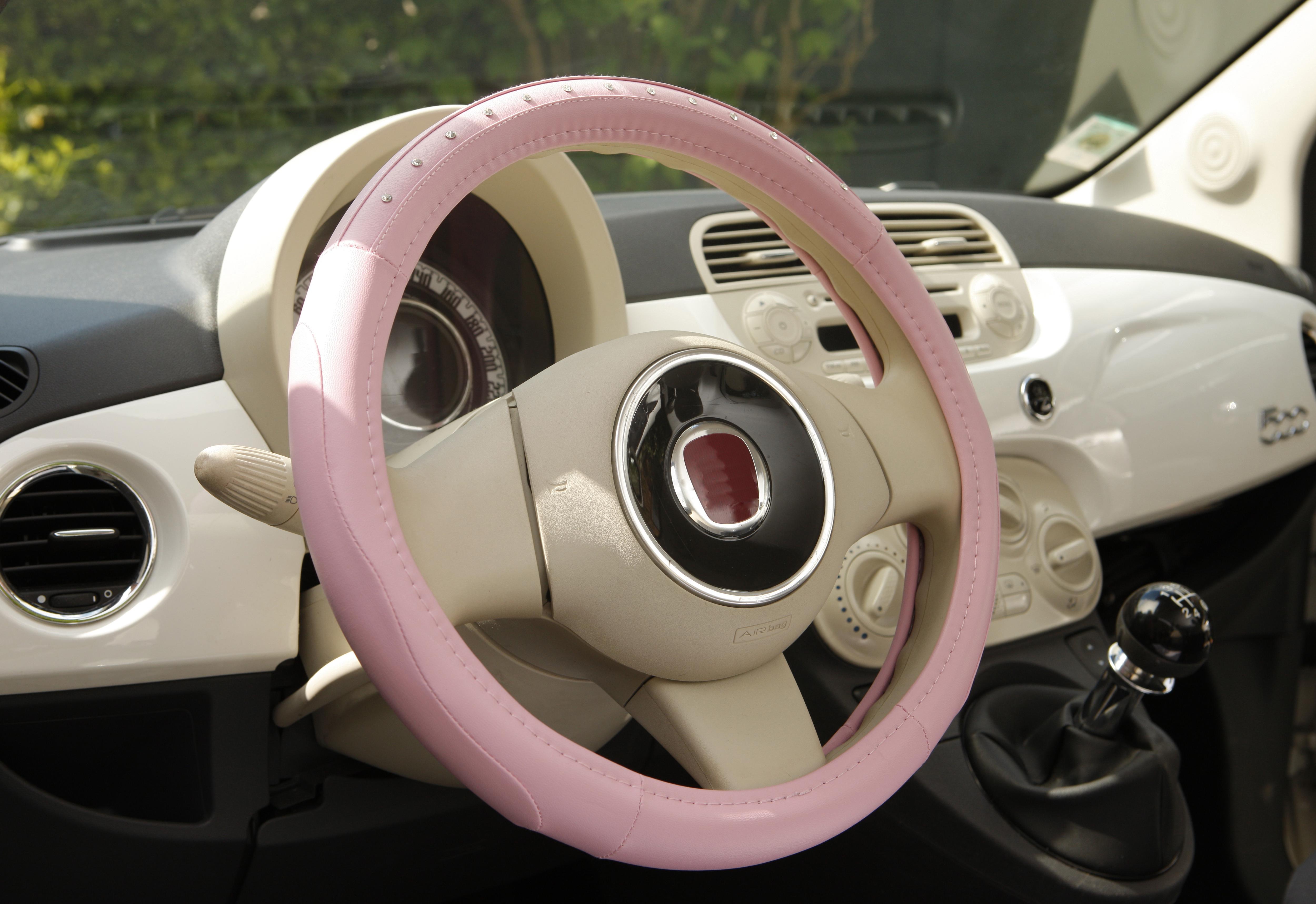 Ce couvre volant rose incrusté de strass donnera à votre voiture un look girly par excellence ! Revêtement extérieur doux au toucher, et structure intérieure en élastomère blanche, souple et sans odeur. Le must de la mode ! Effet look garanti matériaux et finitions de qualité toucher raffiné et subtil convient à tout volant auto (diamètre de 36,5 à 38 cm).