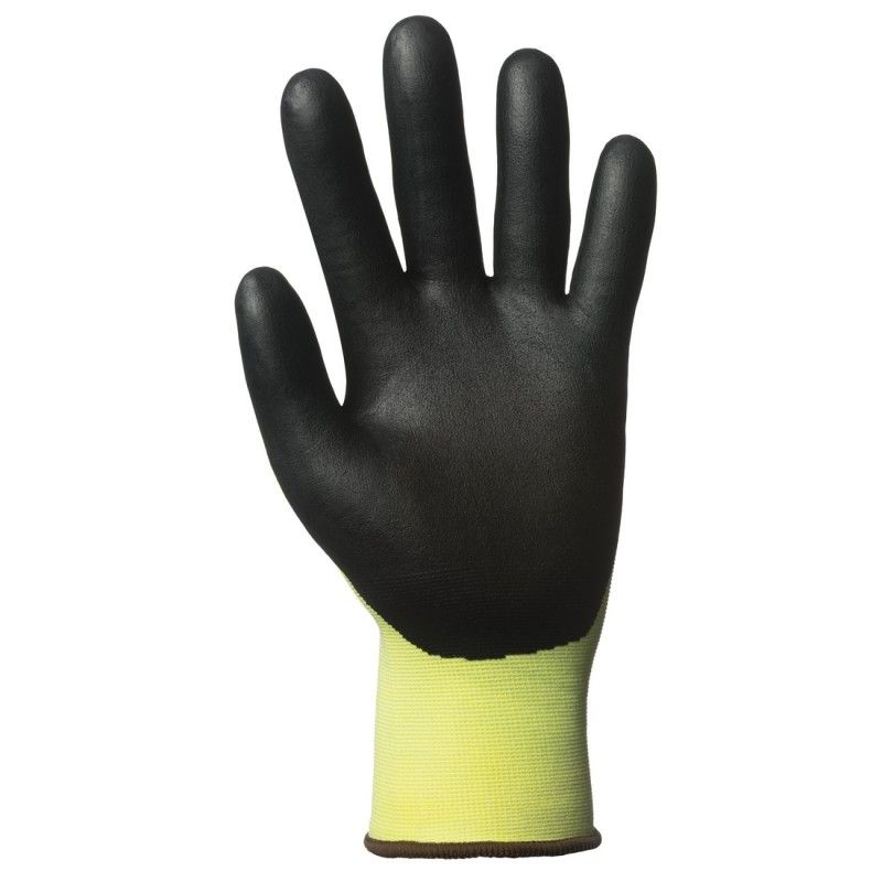 Ce gant anti-coupure offre une bonne protection contre les coupures du fait de son tricot à base de HPPE, nylon et élasthanne, il possède une enduction palmaire en micro-mousse de nitrile assurant à l'utilisateur une excellente respirabilité. La durée de vie de ce gant est prolongée grâce un niveau de résistance à l'abrasion élevée et sa couleur jaune fluo assure une haute visibilité du gant pour l'utilisateur. Quant à son effet seconde peau garantit une sensibilité tactile et un confort optimal à l'utilisateur.