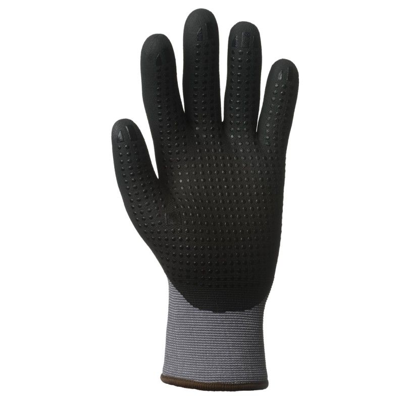 Ce gant de protection en manutention EUROLITE 15N606D possède un enduit fin en micro-mousse de nitrile noire assurant la réspirabilité du gant et une bonne dextérité. Il possède également un tricot en polyamide, une durée de vie prolongée du fait de sa très bonne résistance à l'abrasion et une adhérence optimale grâce aux picots sur la paume.