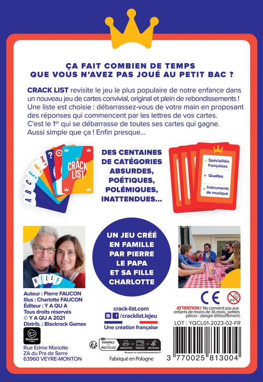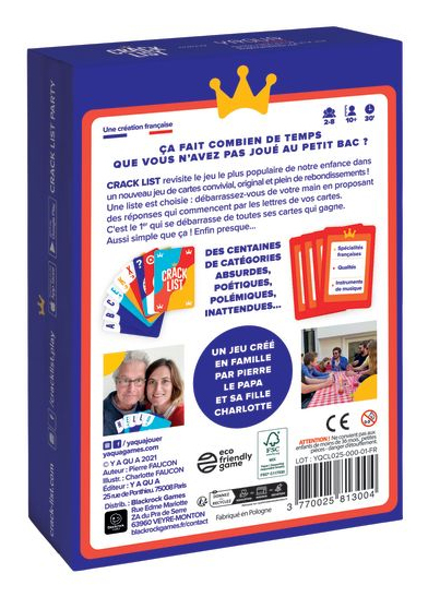 "Être le 1er à se débarrasser de toutes ses cartes ! Les règles du jeu sont simples : une liste est choisie, chacun votre tour, débarrassez-vous de de votre main en proposant des réponses qui commencent par les lettres de vos cartes. Exemple : ""Chanteuses"" Carte A pour Angèle, carte B pour Beyoncé, "