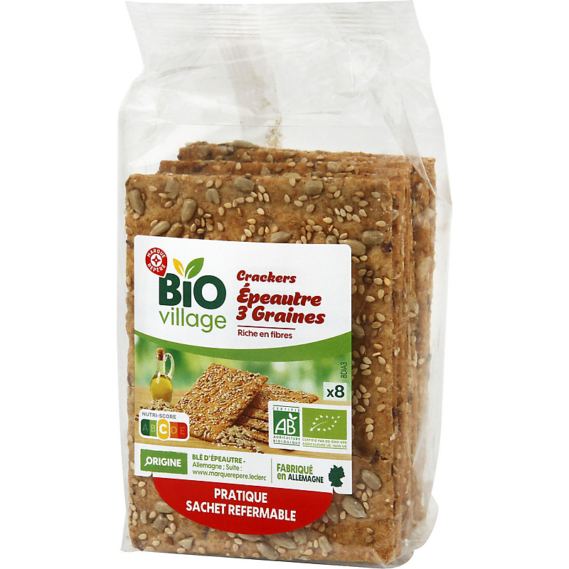 Crackers épeautre et 3 graines bio - 200 g - BIO VILLAGE