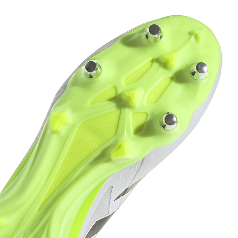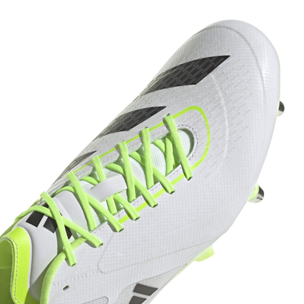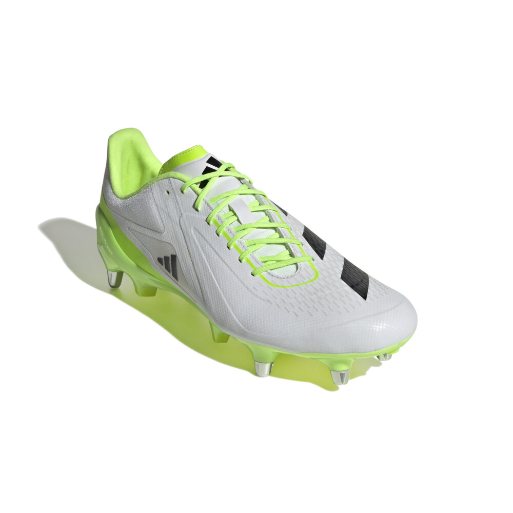 Une vitesse ultime dans toutes les directions. À mesure que le jeu s'accélère, les joueurs doivent réagir en un clin d'œil. Conçue pour terrain gras, cette chaussure de rugby adidas RS15 Ultimate est légère avec son avant-pied en matière synthétique. Les ailes de stabilité rigides, le tissu ripstop à l'arrière du pied et les inserts en mousse Sensepods au talon t'assurent un maintien optimal pour les sprints. Un laçage asymétrique et des éléments imprimés en 3D sur le dessus aident à tirer de façon précise. La semelle extérieure Speedframe assure une accroche supérieure. Référence : HP6813
