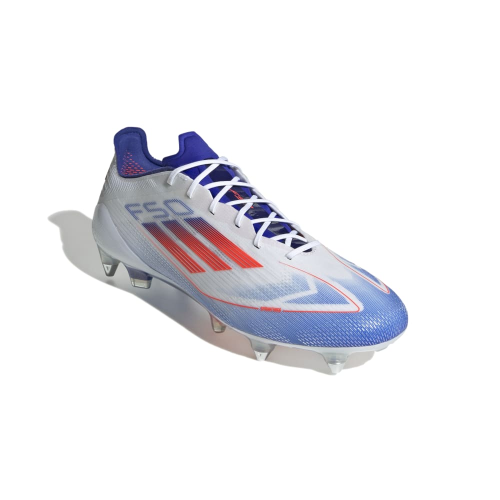 Libère ta vitesse avec la F50 adidas. Créée pour révéler tout ton potentiel en termes d'accélération, de mouvements et de rapidité. La fine tige Fibertouch de cette chaussure de football adidas Elite ultralégère possède une languette Compression Fit Tunnel pour un maintien parfait et une texture Sprintweb 3D pour garder le ballon collé au pied. La semelle extérieure dynamique Sprintframe 360 booste tes accélérations sur terrain gras. Ce produit contient au moins 20 % de matériaux recyclés. En réutilisant des matériaux déjà créés, nous contribuons à réduire les déchets et notre dépendance aux ressources limitées, afin de réduire l'empreinte écologique des produits que nous fabriquons. Une paire de semelles et un sac à crampons offert aux couleurs des chaussures F50. Référence : IF1299