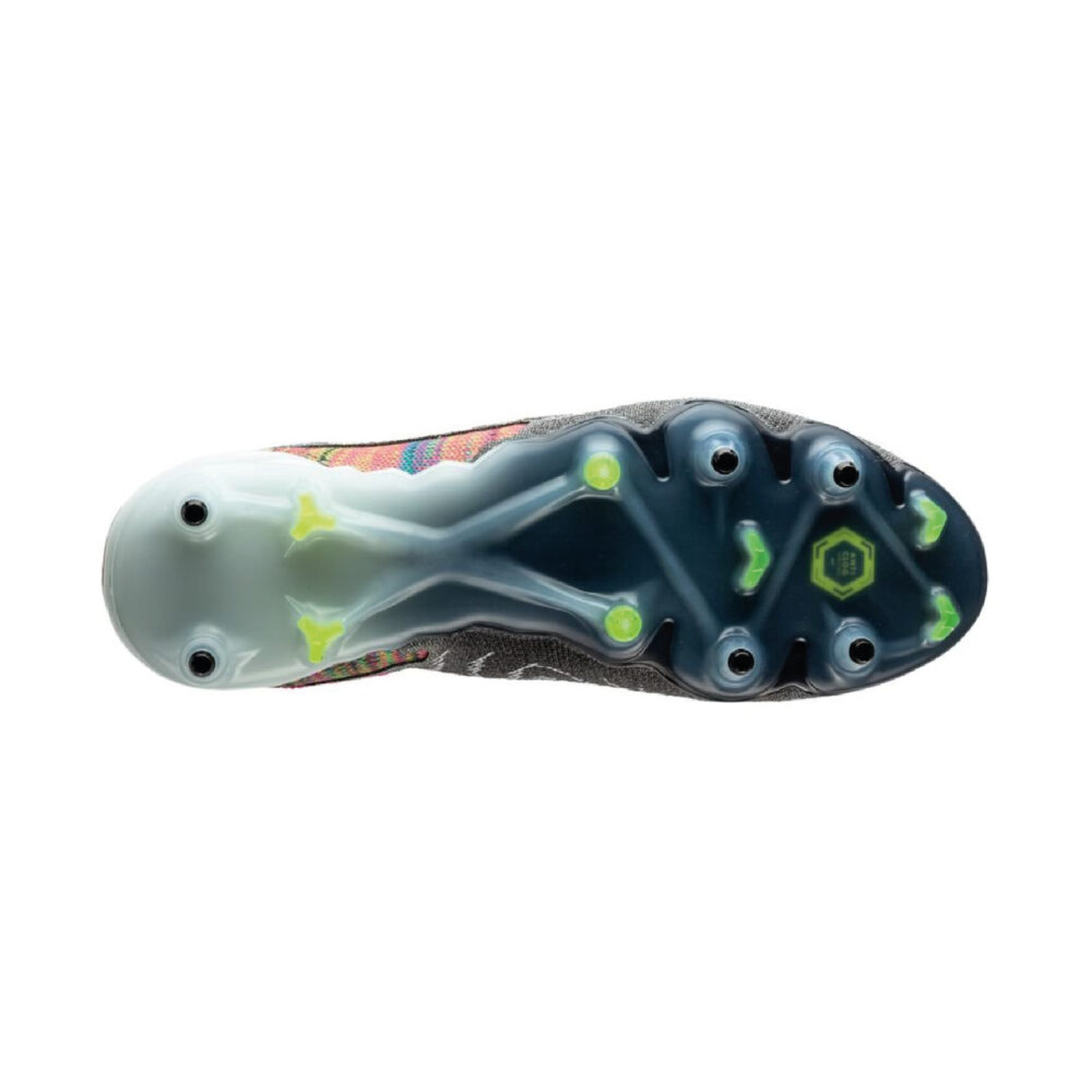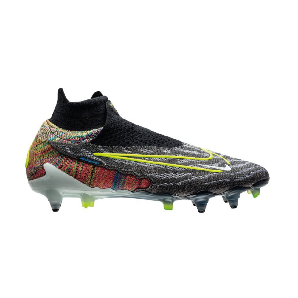 Joue avec une précision ultime en portant les chaussures de football Nike Phantom GX Elite DF Fusion SG-Pro Anti-Clog. Cette édition spéciale “Fusion” met en valeur les mailles Flyknit contenues dans la chaussure qui améliorent l'ajustement. Elles disposent de mailles couleurs arc-en-ciel inspirées par la chaussure de running Flyknit Racer. Les mailles Gripknit adhérentes enveloppent l'avant-pied pour améliorer ton contrôle quand tu dribbles, offrant la quantité suffisante pour une manipulation adroite du ballon tout en conservant une sensation naturelle. Gripknit améliore aussi les tirs, avec l'enveloppe qui s'étend autour des deux premiers lacets pour créer une zone de frappe plus large –idéal pour produire les passes absurdes de KDB. C'est aussi résistant aux intempéries, et aussi efficace dans les conditions sèches et humides sans avoir besoin d'ajouter de revêtement supplémentaire. Référence : FD5230-071