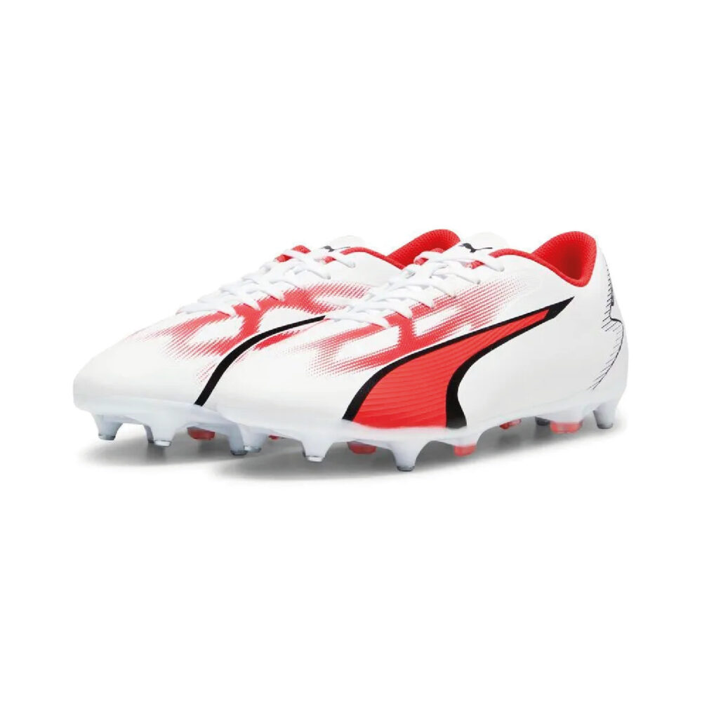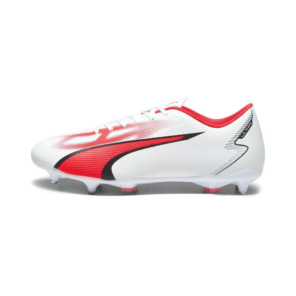 Crampons de football Homme Puma ULTRA PLAY MXSG Blanc. Tige en matière synthétique, Semelle extérieure légère en TPU avec crampons coniques. Référence : 107525-01