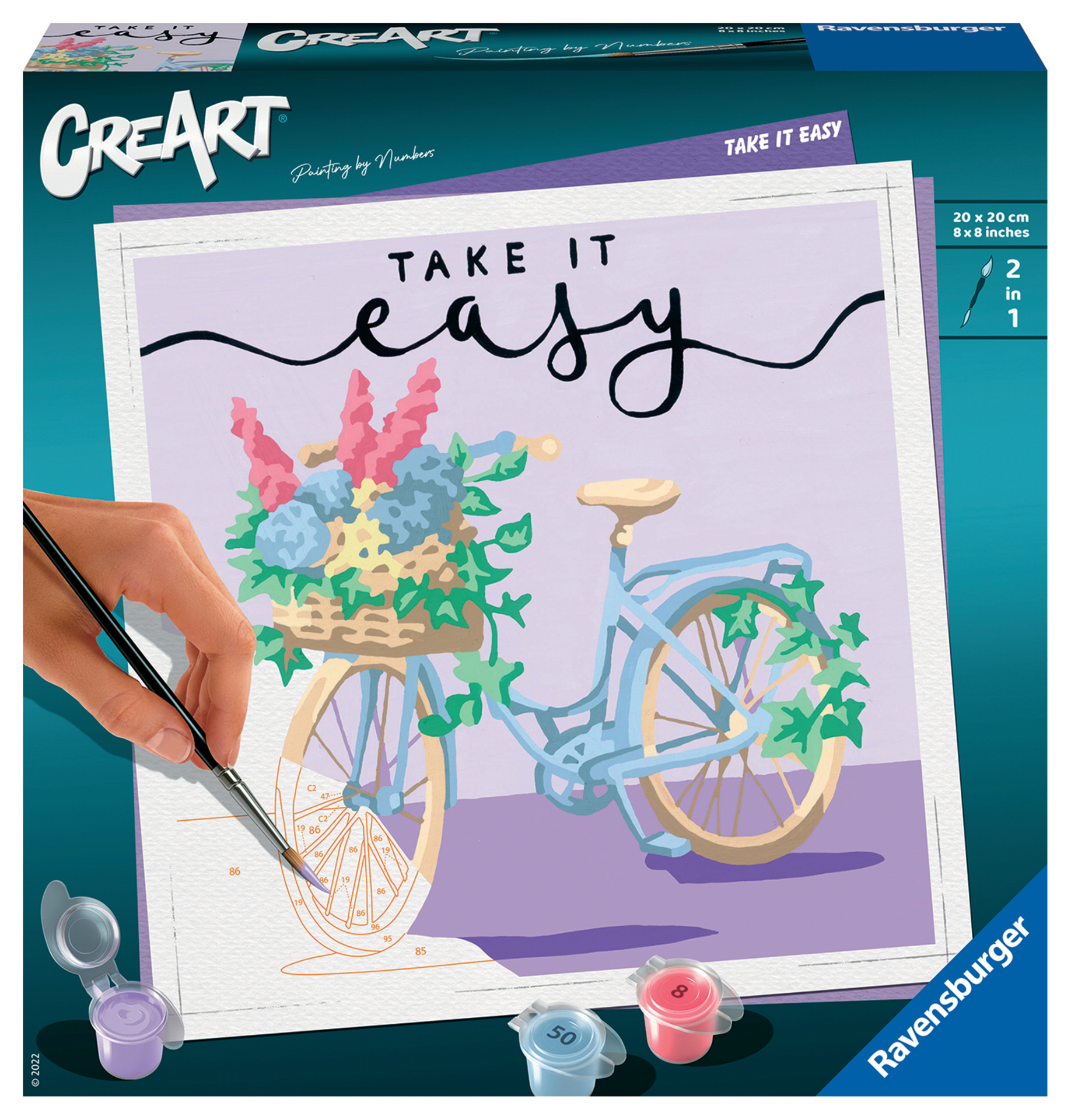 | Plus produit | ACTIVITE CREATIVE POUR ADULTE Ce kit complet vous permet de réaliser un magnifique tableau grâce à la peinture par numéros. Ce vélo vintage orné de fleurs et son format carré lui offrent un véritable look tendance ! RESULTAT GARANTI Tout le monde peut être un artiste avec la peinture par numéros ! Peignez pas à pas grâce aux champs de peinture numérotés et réalisez un véritable chef-d\'uvre. Vous serez fiers de dévoiler votre réalisation ! DETENTE ET RELAXATION Loin des écrans, la peinture par numéros vous invite à vous détendre et à vous déconnecter de votre quotidien en favorisant la concentration et en diminuant votre stress. C\'est une activité idéale par temps de pluie, après une journée de travail ou durant les week-ends. DECORATION OU CADEAU PERSONNALISE Une fois le tableau peint, il devient une décoration tendance à accrocher dans votre intérieur. Vous pouvez aussi l\'offrir à vos proches comme une uvre d\'art personnalisée et faite par vos soins ! TOUT EST INCLUS : 1 tableau 20x20 cm, 15 pots de peinture acrylique refermables, 1 double pinceau, 1 palette, 1 attache tableau, 1 modèle et 1 vernis brillant. Les peintures acryliques sont sans odeur, ne demandent aucun mélange et sèchent rapidement. |