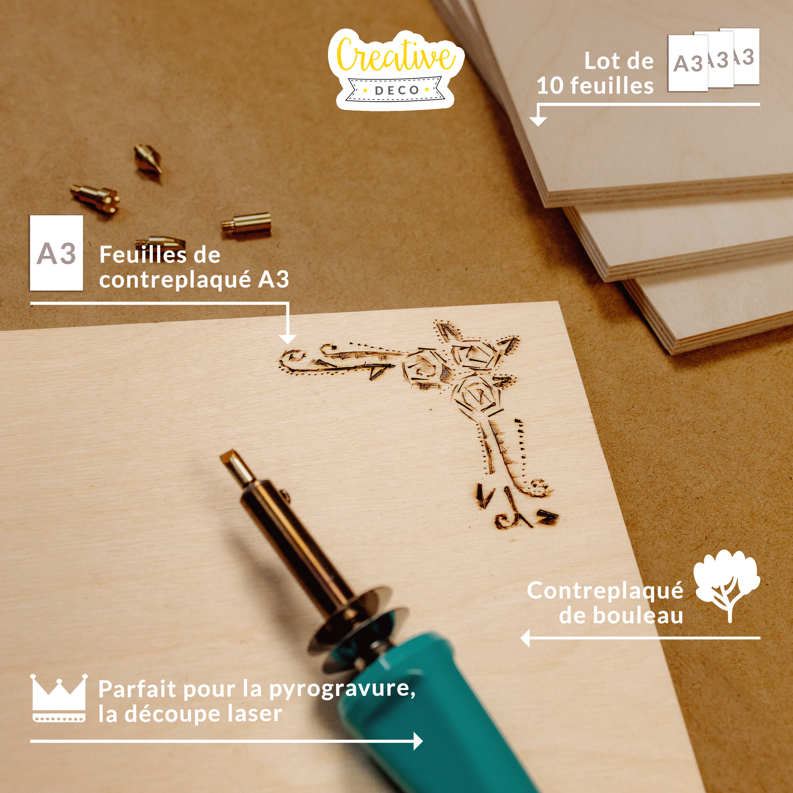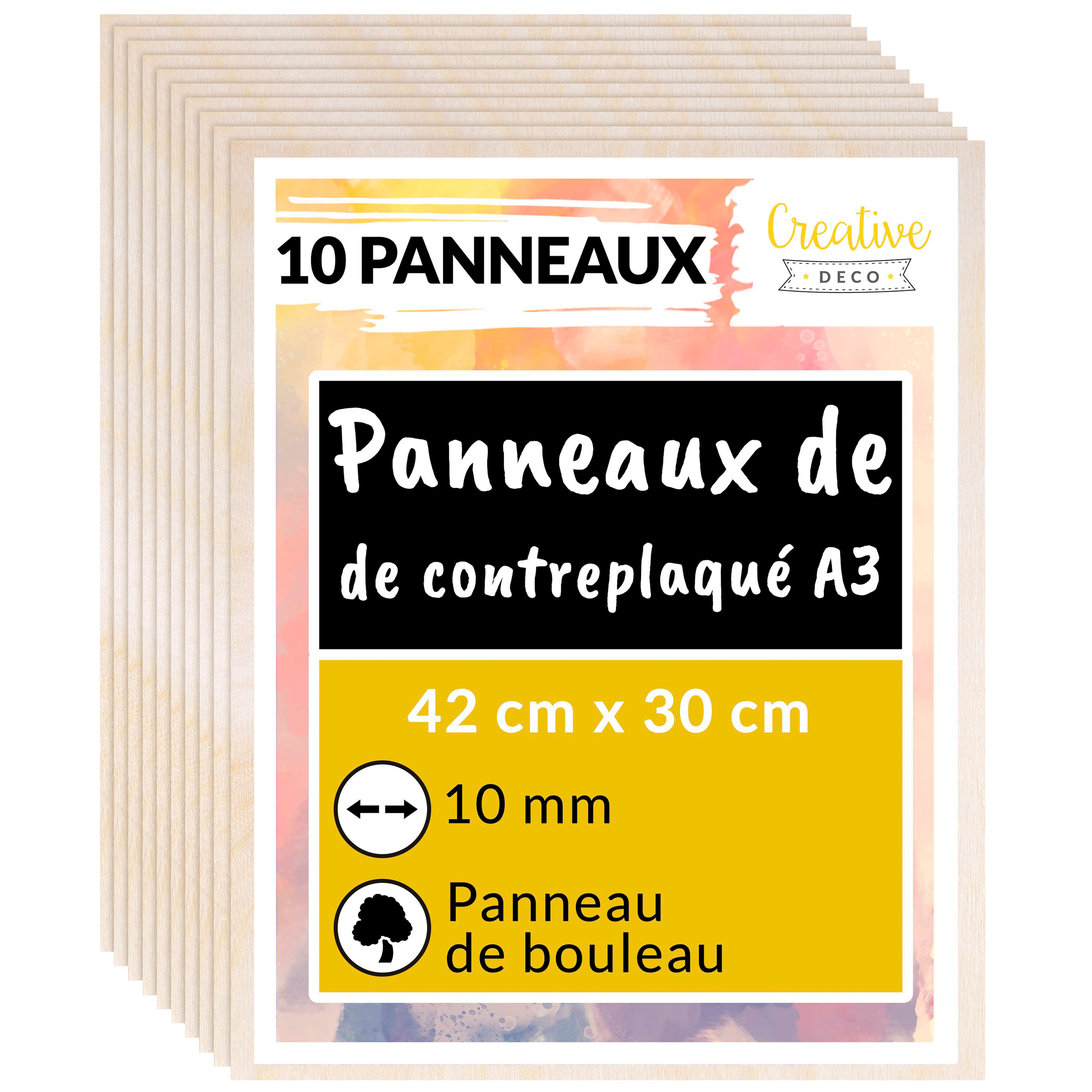| Libellé | Creative Deco 10 x A3 Contreplaqué 10mm | 420 x 300 x 10mm (+/- 0,5mm) | Planche Bois Brut Bouleau | Panneau Découpe Laser | Bois Pyrogravure, Gravur |