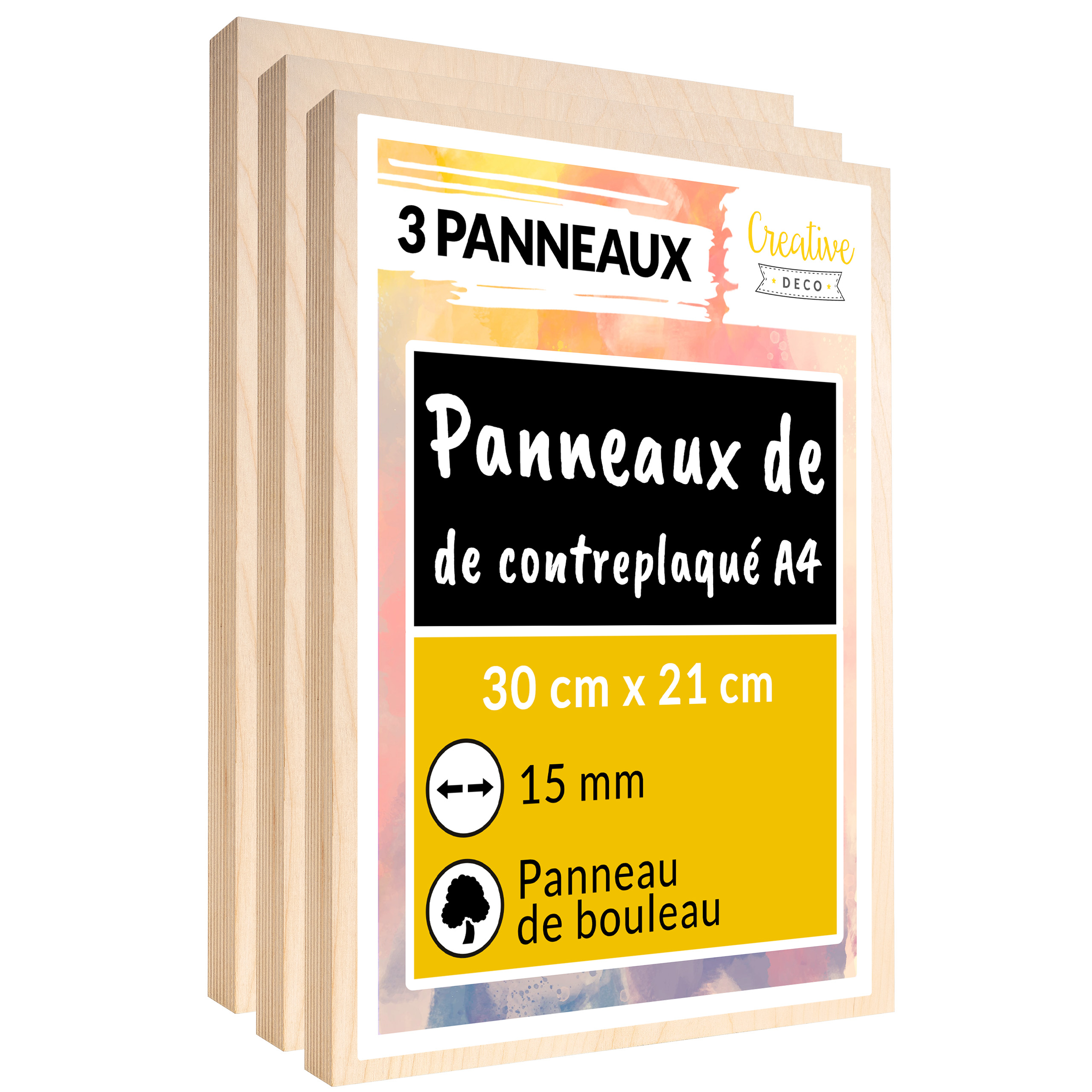 | Libellé | Creative Deco 3 x A4 Contreplaqué 15mm | 300 x 210 x 15mm | Planche Bois Brut Bouleau | Panneau Découpe Laser | Pyrogravure, Gravure, Cricut, Maquett |