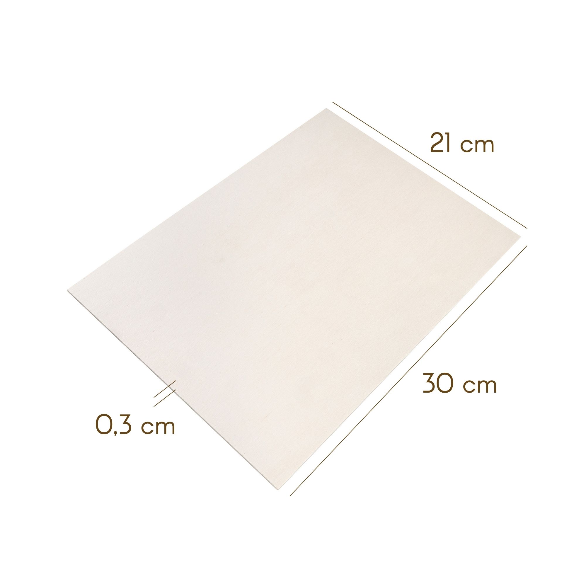 TAILLE IDÉALE – Chaque plaque a approximativement le format d'une feuille de papier A4. La longueur et la largeur du panneau ont une tolérance de +/-2 mm. Parfait pour du bricolage, du vernissage, des projets DIY, de la pyrogravure, des maquettes, du découpage, ou de la pyrogravure. BOIS CLASSE B/B - Nos planches se distinguent par une surface lisse et polie, garantissant au moins une face exempte de défauts. L'autre face peut contenir des défauts réparés d'une taille maximale de 6 cm. Dans certains cas, la face avant peut répondre aux normes de qualité de la classe A au lieu de B, et la face arrière aux normes de la classe C au lieu de B. Tous nos panneaux sont soigneusement vérifiés manuellement, ce qui permet de minimiser les défauts et de garantir la plus haute qualité. USAGE MULTIPLE – Les panneaux de contreplaqué peuvent être utilisés pour de nombreux projets d’artisanat. Vous pouvez faire de belles gravures, des ornements, des découpes et bien plus encore, comme de jolies décorations comme des planches avec des noms, des formes différentes, des signes pour des occasions telles qu'un anniversaire, Noël, Pâques, un baptême ou des enseignes de porte – il y a de nombreuses possibilités ! DÉFORMATIONS RARES – Si la plaque se déforme accidentellement, mouillez le côté concave et séchez le côté convexe. Utilisez une éponge ou un pulvérisateur pour humidifier le côté concave du contreplaqué (eau chaude). Ensuite, posez la planche côté humide vers le bas sur le sol pour 2 jours. FABRIQUÉ DANS L'UE - Nous nous procurons nos produits dans l'Union européenne, qui applique certaines des normes les plus élevées au monde. C'est pourquoi, nous pouvons garantir une haute qualité de nos produits à nos clients. Nos produits sont fabriqués à partir de matériaux naturels et non toxiques.