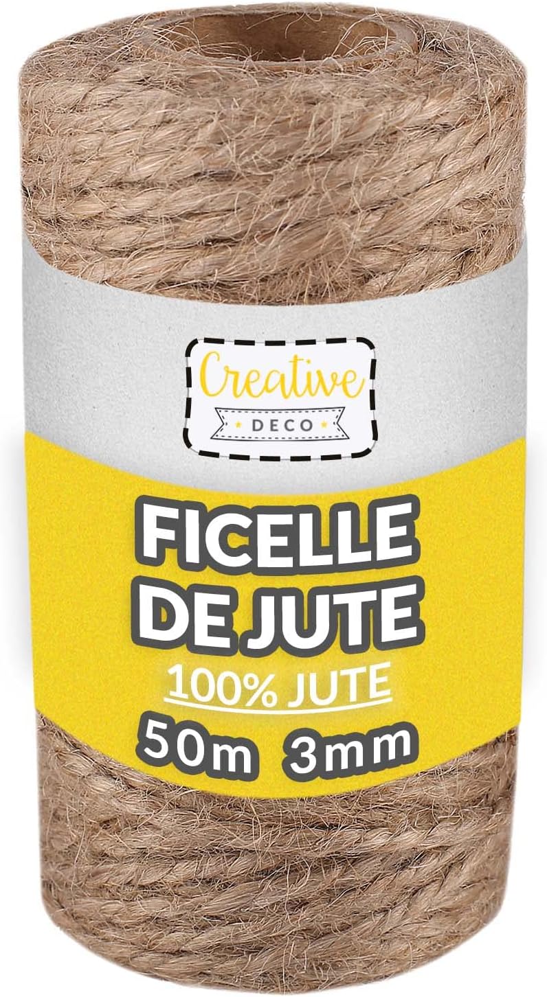 | Libellé | Creative Deco 50m Ficelle Jute | Épaisseur 3mm | Ficelle Jardinage | Deco Mariage Champetre | Ficelle Bricolage | Attache Tomate | Corde Jute |