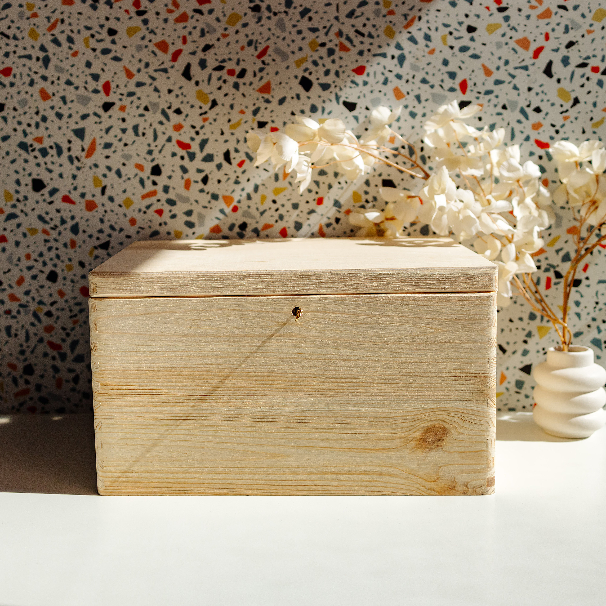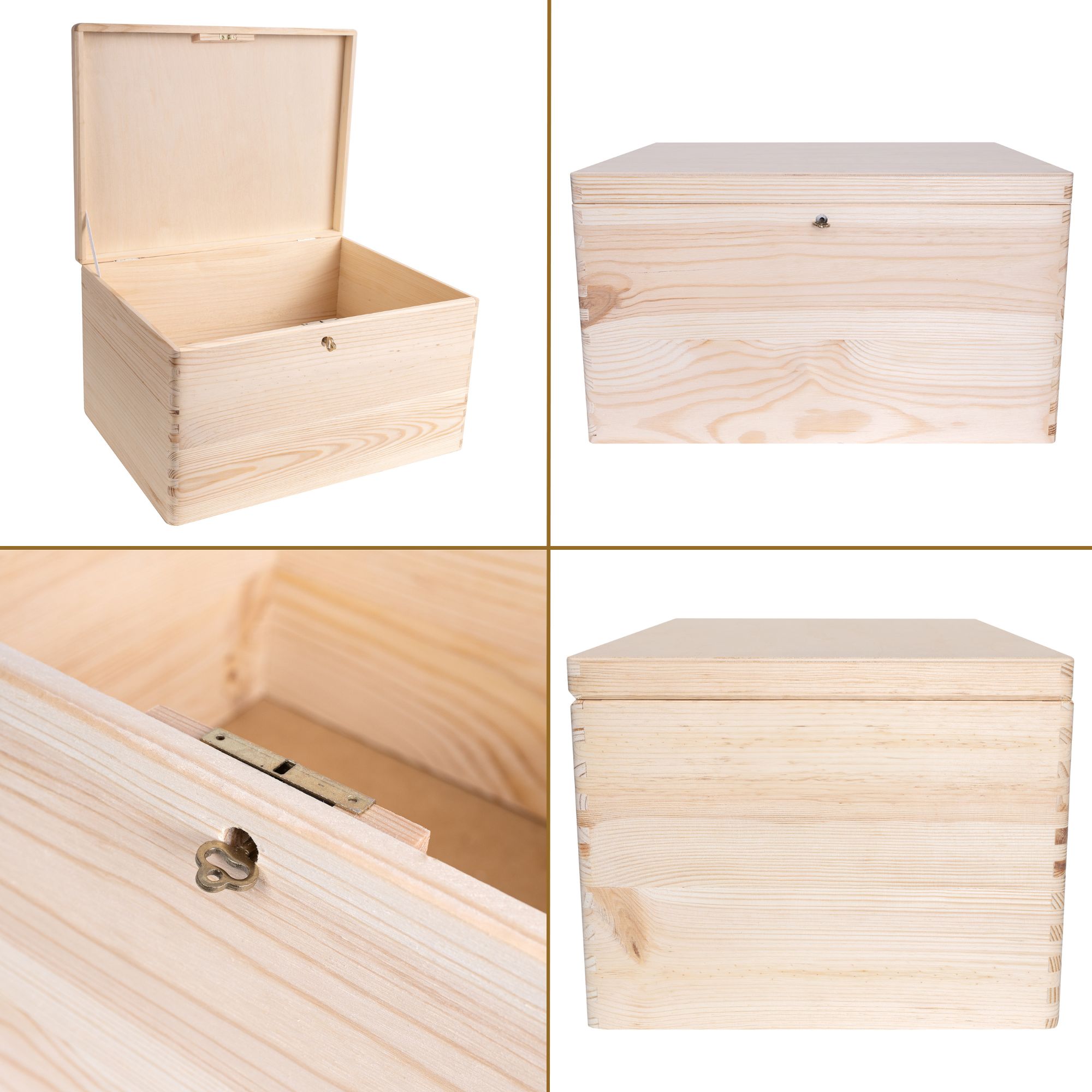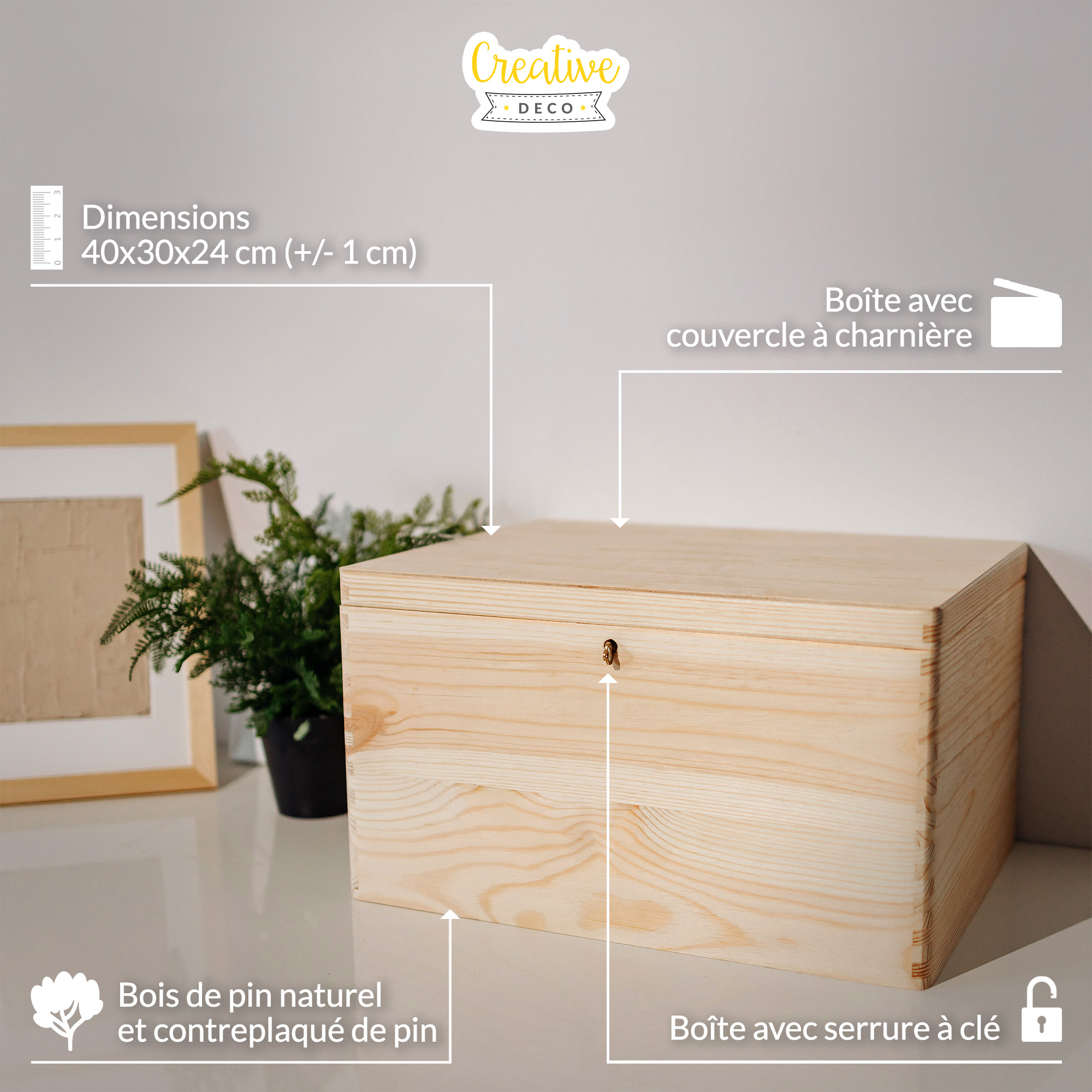 Creative Deco Boite Rangement en Bois avec Clé | 40 x 30 x 24 cm (+/- 1 cm) | Non Peint | avec Couvercle
