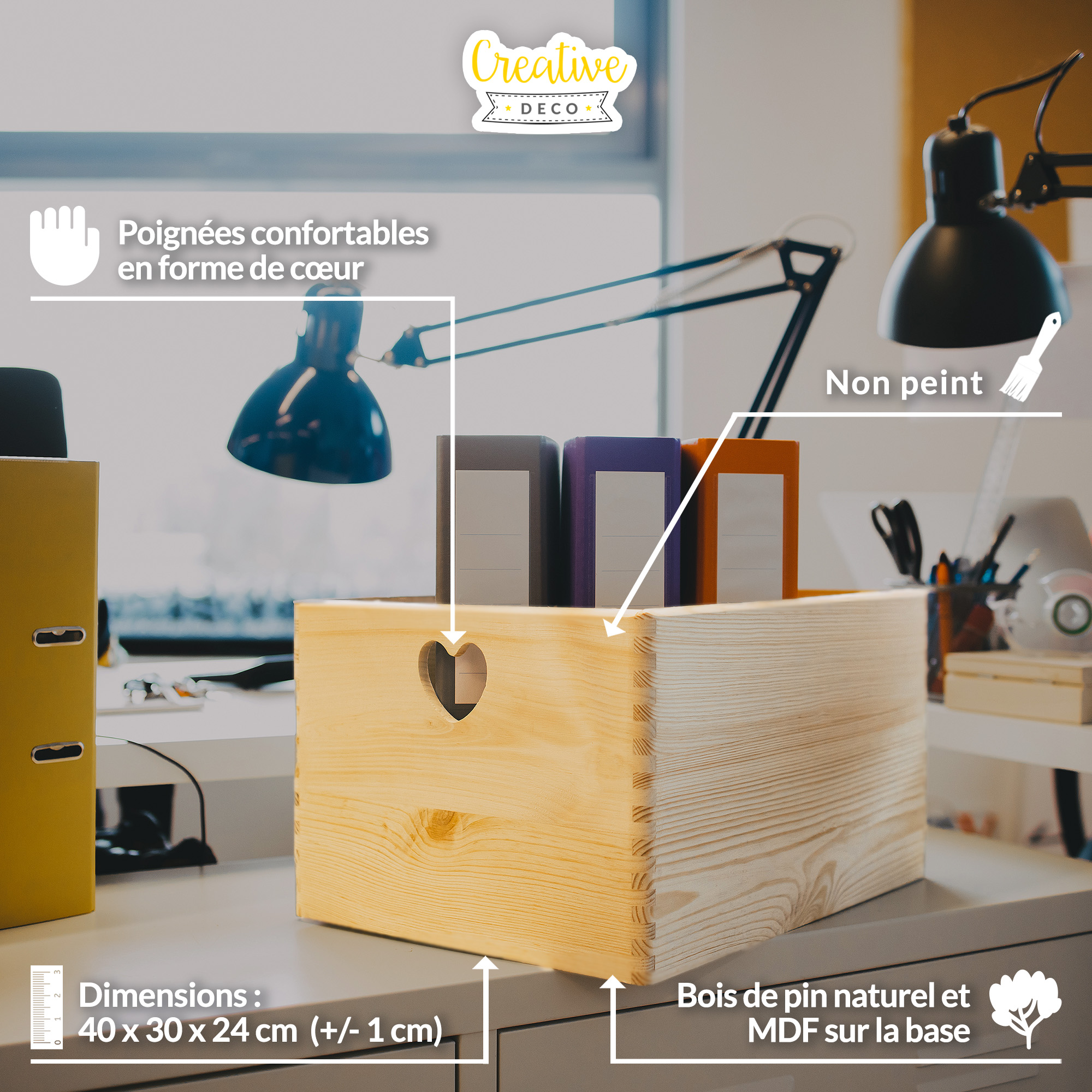 Libellé Creative Deco Caisse Bois Rangement 40 x 30 x 24 cm (+/- 1 cm) | Boîte de Rangement Bois | Boite Rangement Cuisine | Caisse de Rangement Bureau