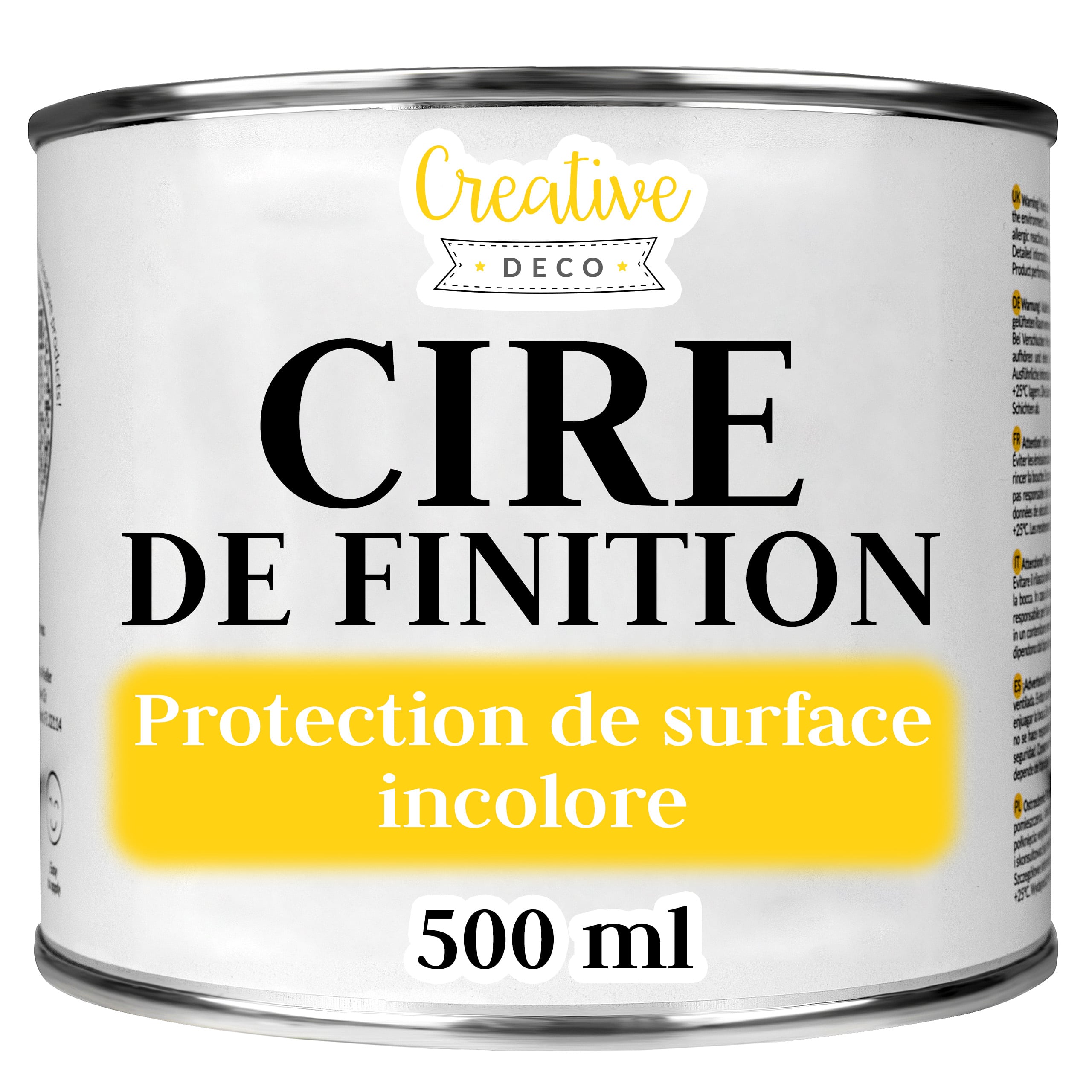 | Libellé | Creative Deco Cire de Finition Incolore | 500 ML | Vernis Transparent | Brillant | Protection des Meuble, Surface, Bois |