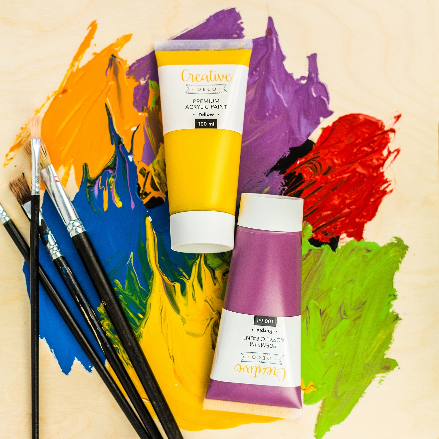 GRANDE SÉLECTION – Notre grand tube de peinture vous permet de choisir parmi 12 belles couleurs qui incluent: blanc, jaune, orange, rouge, vert clair, vert, bleu clair, bleu, pourpre, marron, gris et noir. Vous pouvez également trouver ces couleurs dans notre lot de 12 peintures dans notre offre et les bouteilles de 1L de couleurs blanche et noire. PLUSIEURS SURFACES – Les peintures sont fantastiques pour toutes les surfaces telles que la toile tendue, le bois, le papier, le carton, l’aggloméré, le plâtre, les pochoirs, le métal, le plâtre ou la plastique. Vous pouvez aussi peindre sur un meuble, un tableau, une maquette ou une figurine. La peinture sèche en 3 heures environ. DÉVELOPPER L'IMAGINATION – Notre ensemble de peintures est parfait pour développer l'imagination, la créativité et la motricité d'un enfant car elle est facile et sûr d'utilisation. Les peintures sont parfaites non seulement pour les enfants, mais aussi pour les adultes dans des projets de bricolage, d’artisanat ou tous vos loisirs créatifs. À BASE D'EAU – Toutes les couleurs Creative Deco sont fabriquées à partir des pigments à base d'eau de la plus haute qualité disponible sur le marché. Nos peintures seront idéales pour les peintres adulte, peu importe leur niveau de compétence. Idéal pour le découpage, l'artisanat, les dessins et les projets artistiques. FABRIQUÉ DANS L'UE - Nous nous procurons nos produits dans l'Union européenne, qui applique certaines des normes les plus élevées au monde. C'est pourquoi, nous pouvons garantir une haute qualité de nos produits à nos clients. Nos produits sont fabriqués à partir de matériaux naturels et non toxiques.