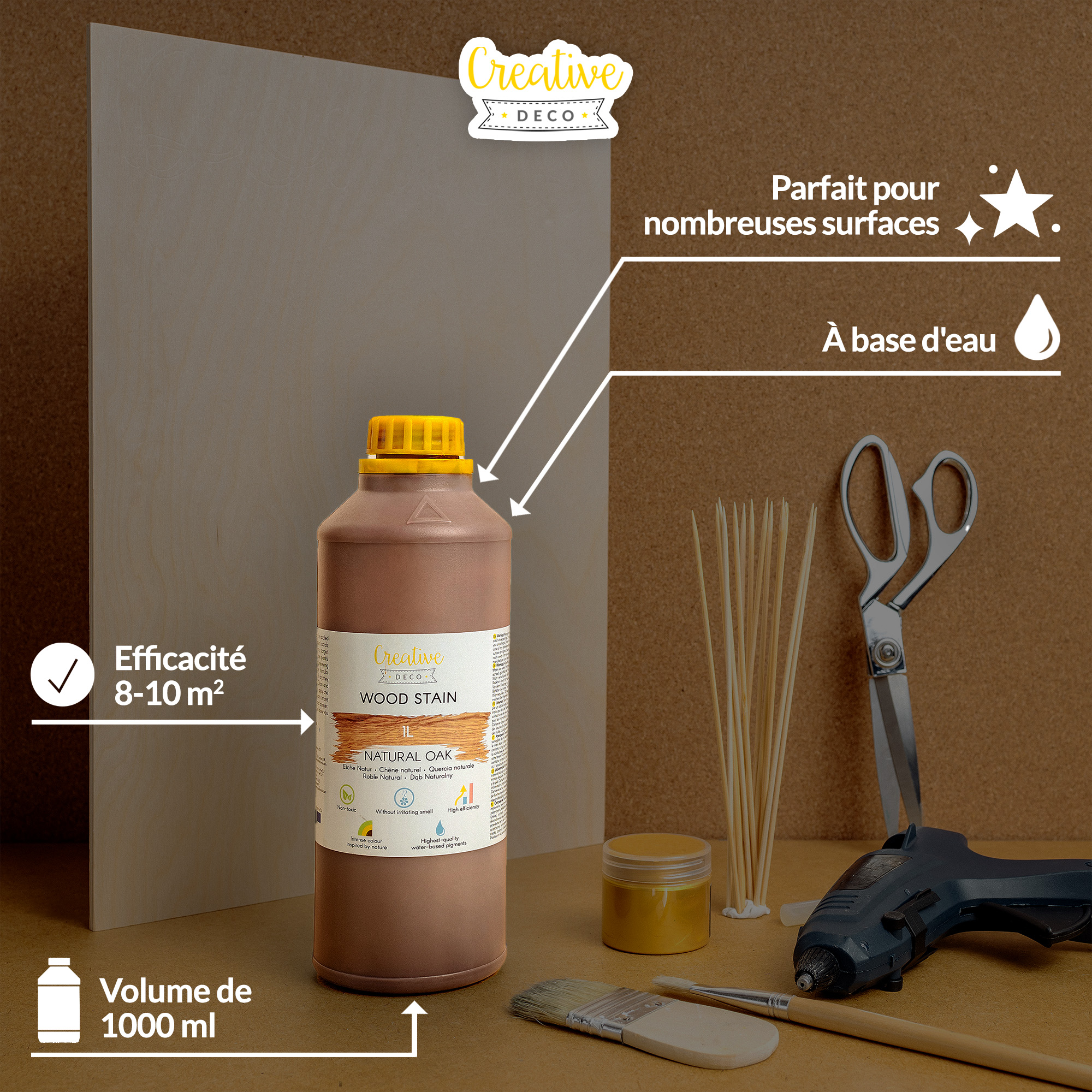 Creative Deco Teinte Bois Chêne 1L | Teinture Bois à Séchage Rapide | Protection de Surface | Vernis Bois