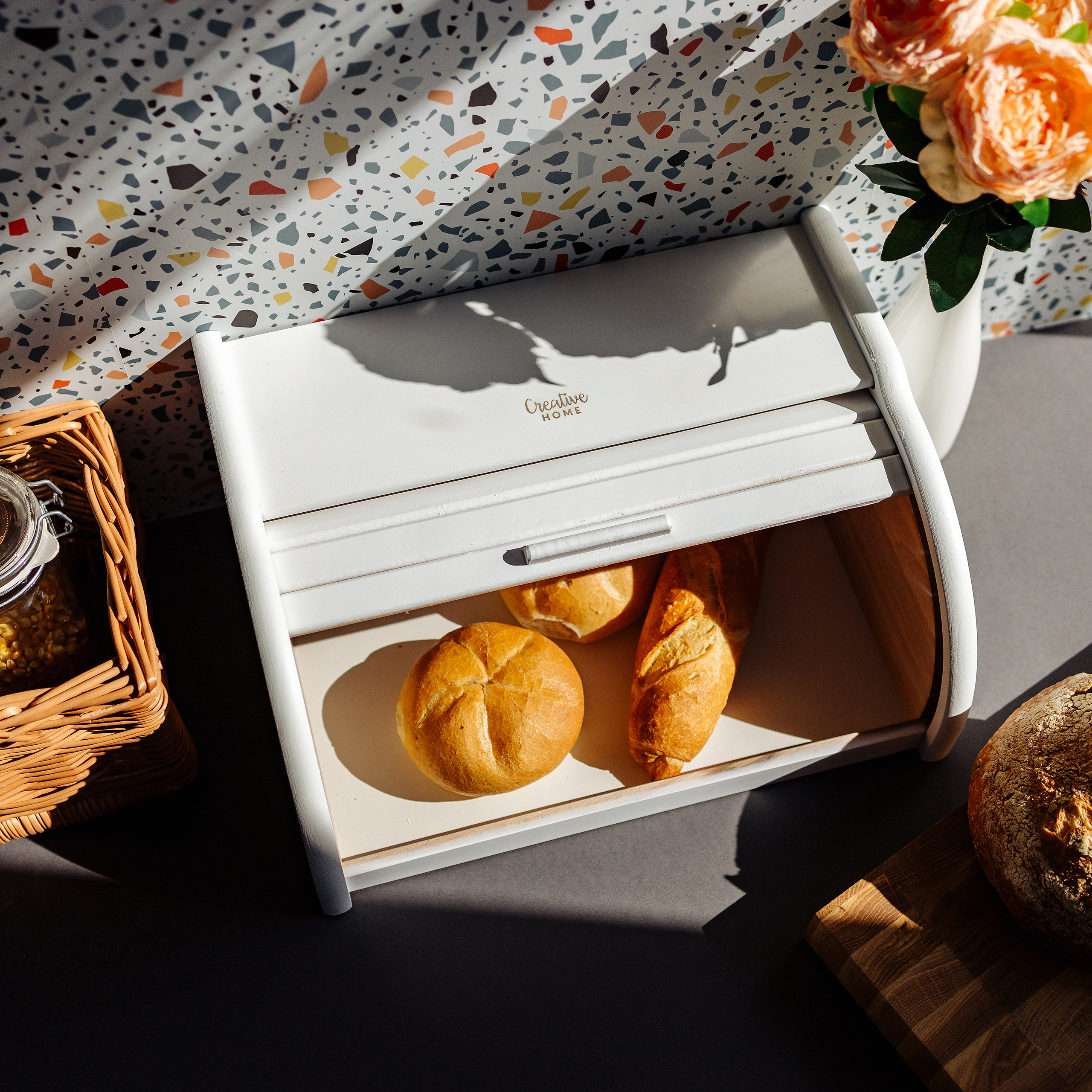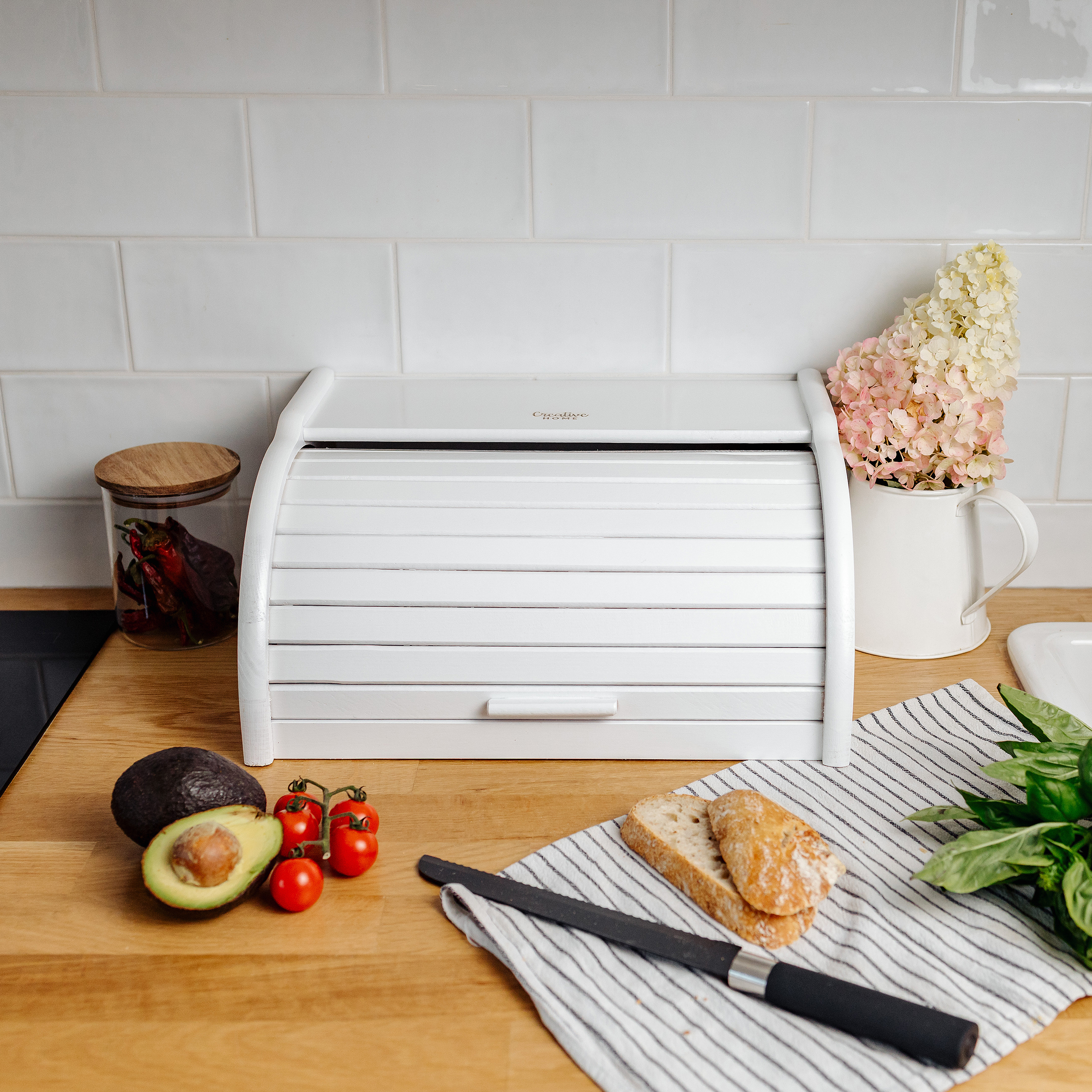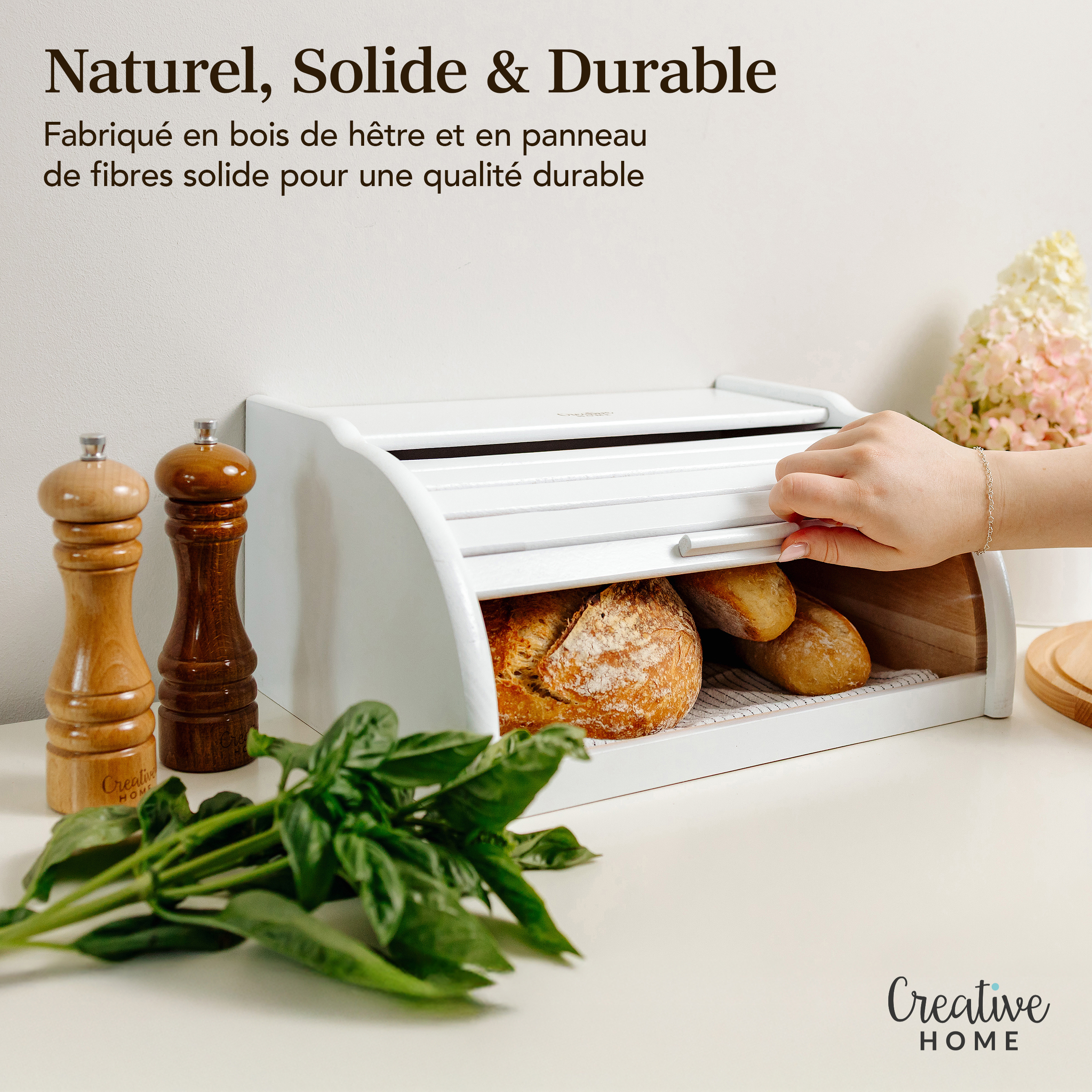 Creative Home Boîte à Pain Blanc | 38 x 28,5 x 17,5 cm (+/- 1 cm) | Boite à Pain | Boite a Pain Bois | Hu
