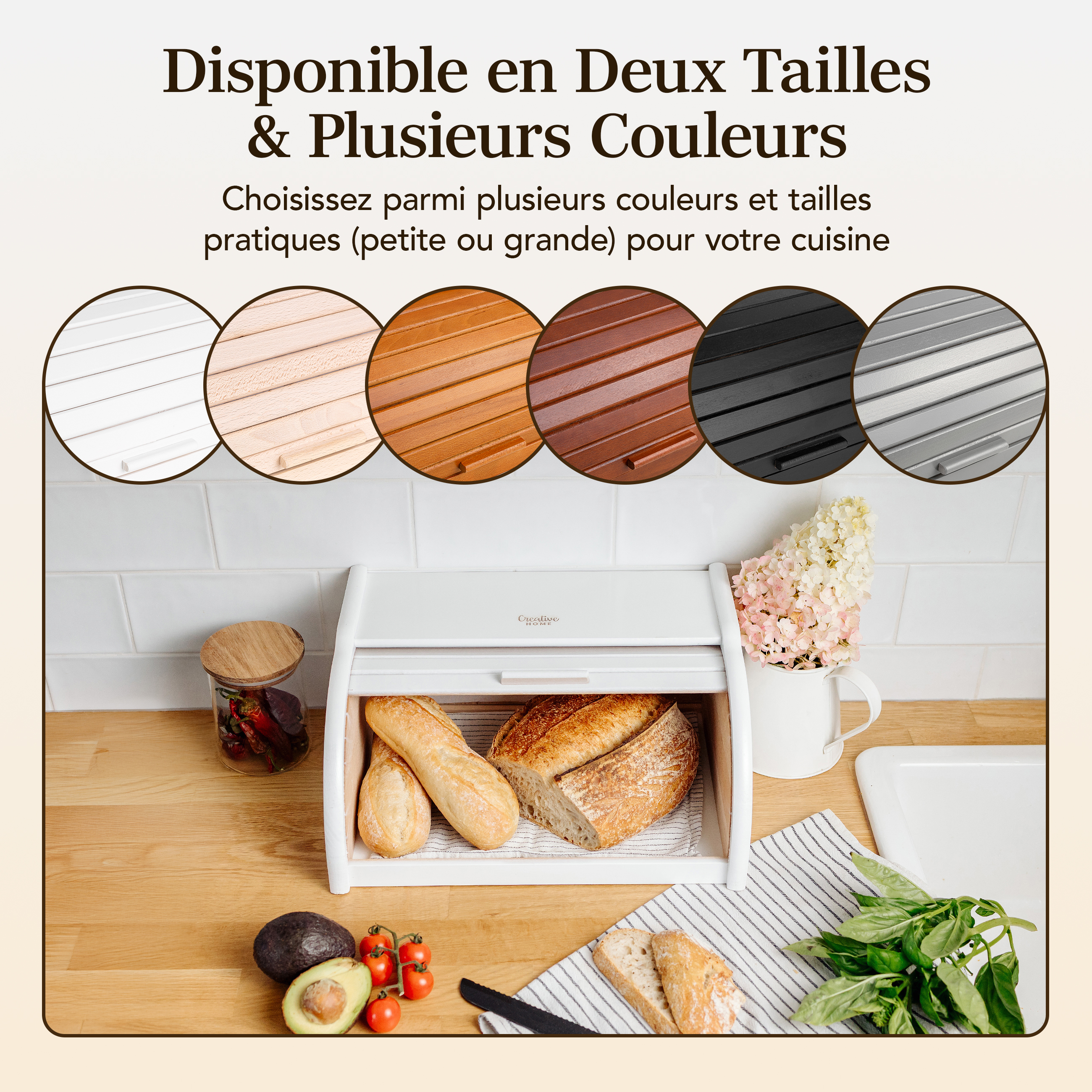 LONGUE CONSERVATION – Les petits espaces entre les compartiments de la corbeille permettent à l'air de circuler et à garder votre pain frais pour longtemps ! Prolongez la fraîcheur de votre pain, baguette, ciabatta, croissant, gâteau, muffin, biscuit ou croque monsieur conservés à l'intérieur de la boîte. Grâce à notre corbeille, vous garderez votre cuisine organisée et de nombreux aliments pourront y être stockés, garantissant une bonne conservation. DESIGN MODERNE – Grâce à son design élégant et vintage et à son bois de hêtre naturel, notre boîte à pain convient à tous les types de pièces, toutes les cuisines et restaurants. La boite est facile à ouvrir grâce à son couvercle et à sa poignée. UTILISATIONS DIVERSES – Notre banette a pain peut être utilisée non seulement pour le pain, mais aussi pour d'autres produits secs ou sucrés. Elle peut servir de boite a fromage pour frigo, boîte a biscotte ou boite a pain de mie par exemple. PRODUIT DURABLE – Vous craignez que vos ustensiles de cuisine viennent de Chine et vous ne savez pas s'ils proviennent d'une source fiable ? Nous pouvons vous garantir que notre niche à pain Creative Home est faite de bois de hêtre naturel, est robuste et durable ! FABRIQUÉ DANS L'UE - Nous nous procurons nos produits dans l'Union européenne, qui applique certaines des normes les plus élevées au monde. C'est pourquoi, nous pouvons garantir une haute qualité de nos produits à nos clients. Nos produits sont fabriqués à partir de matériaux naturels et non toxiques.