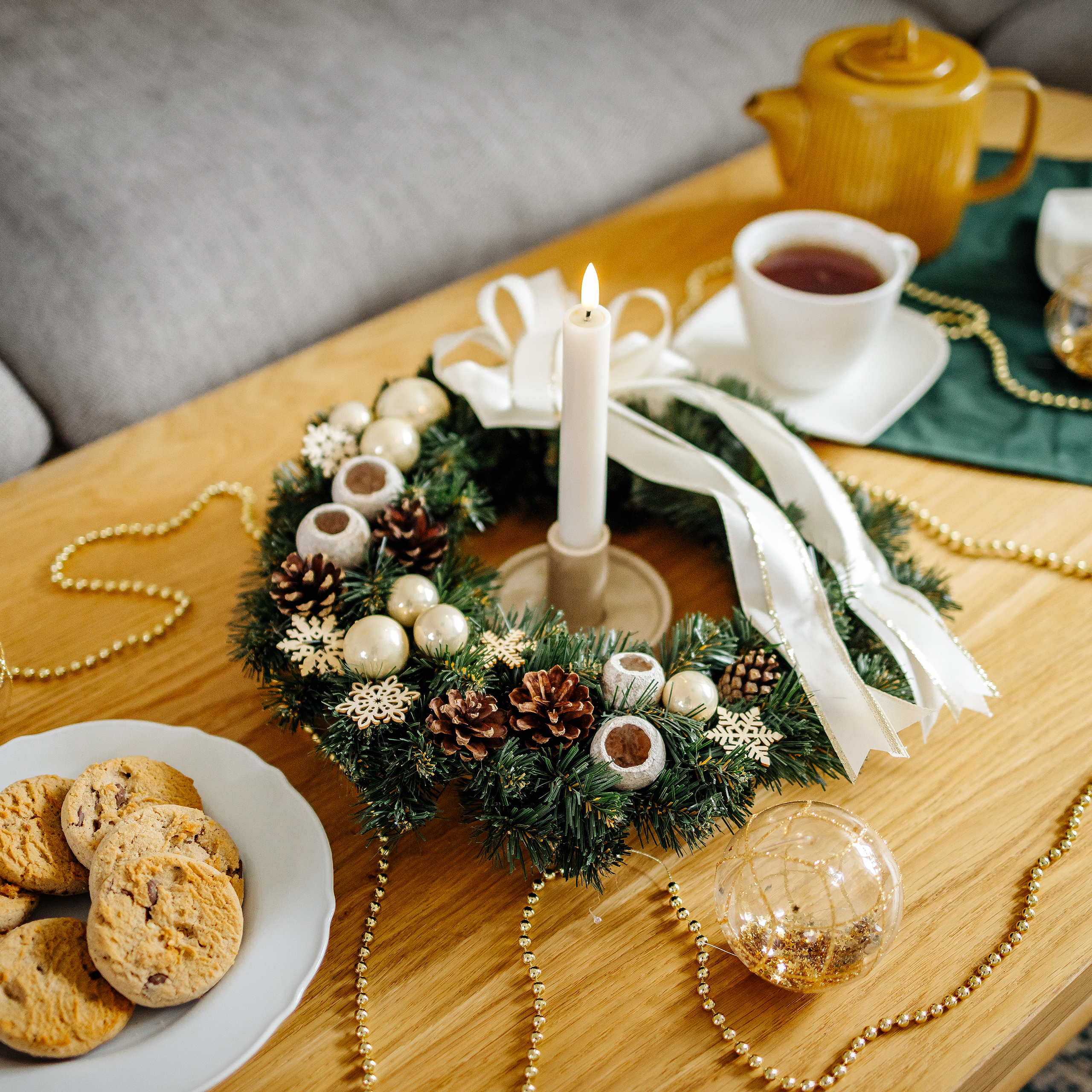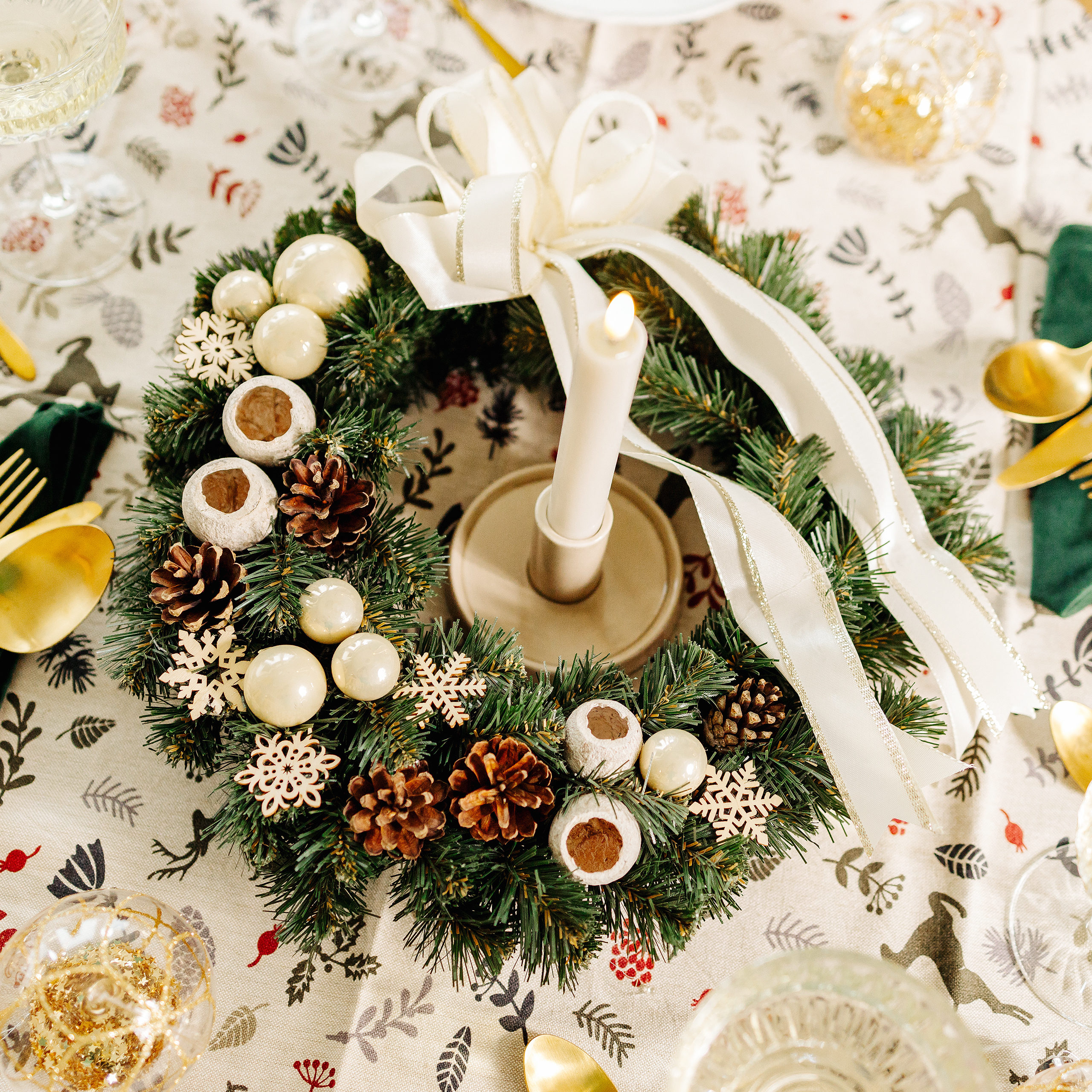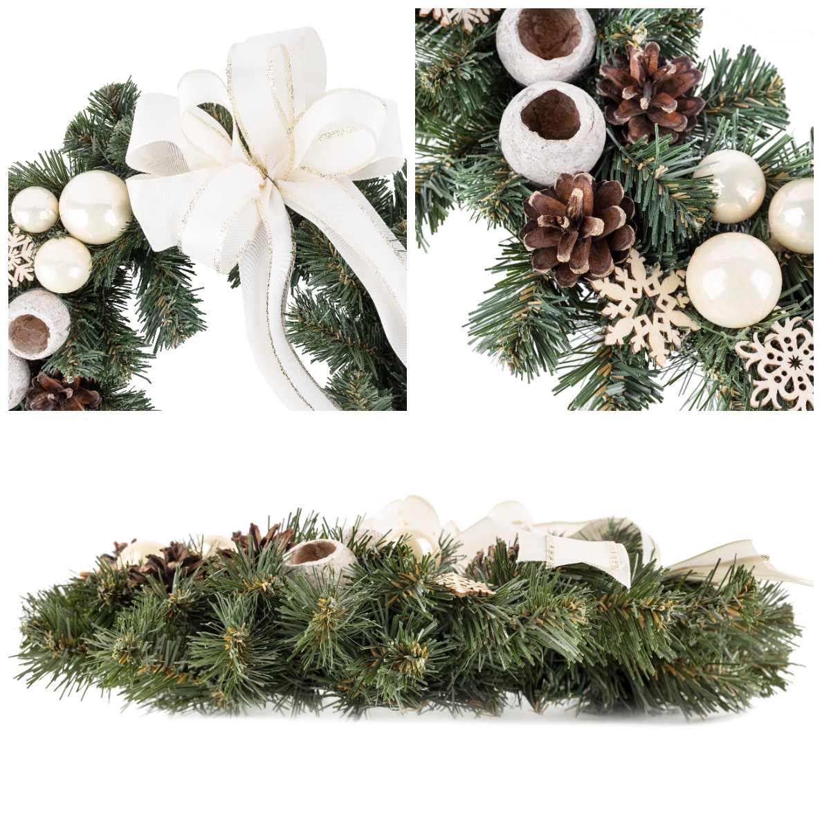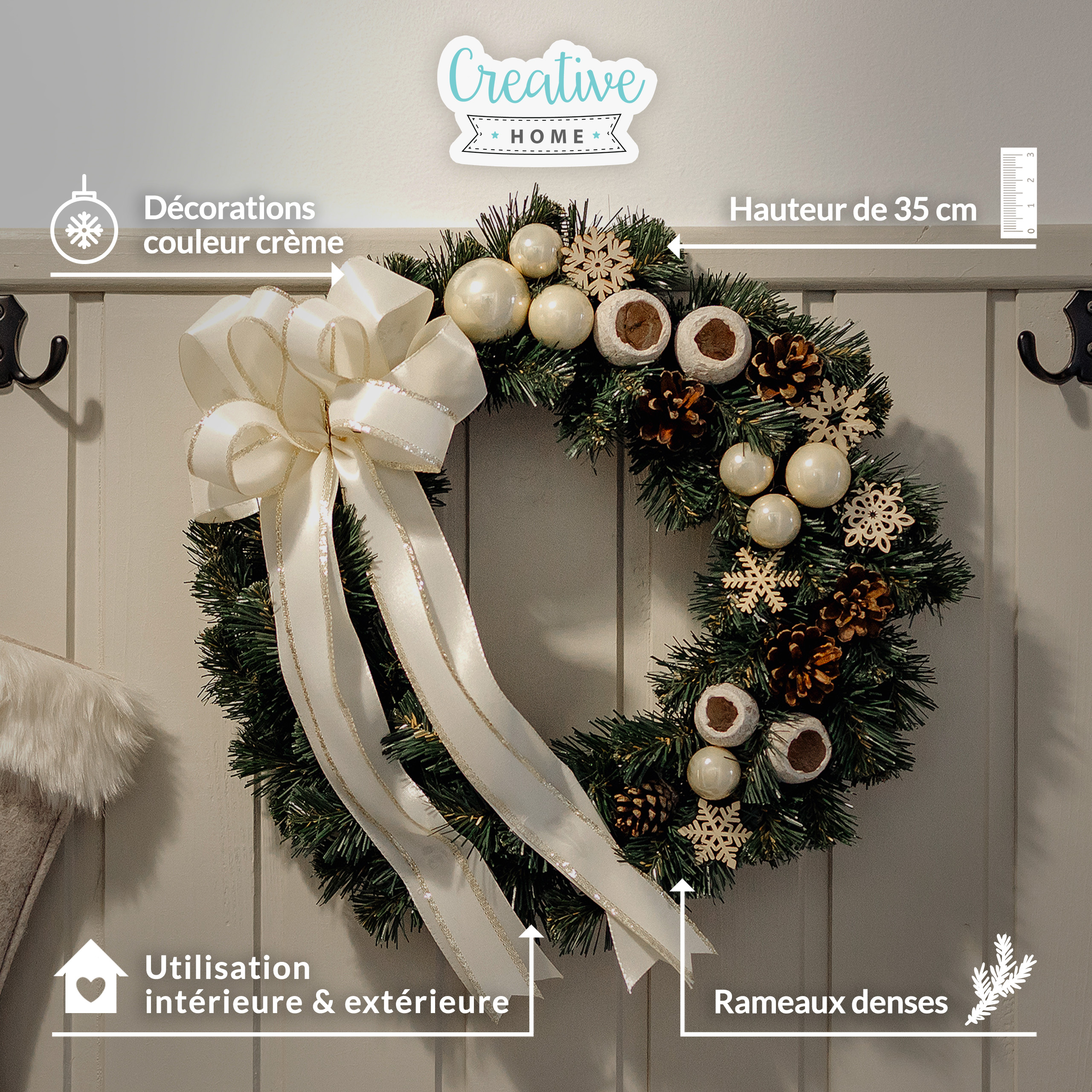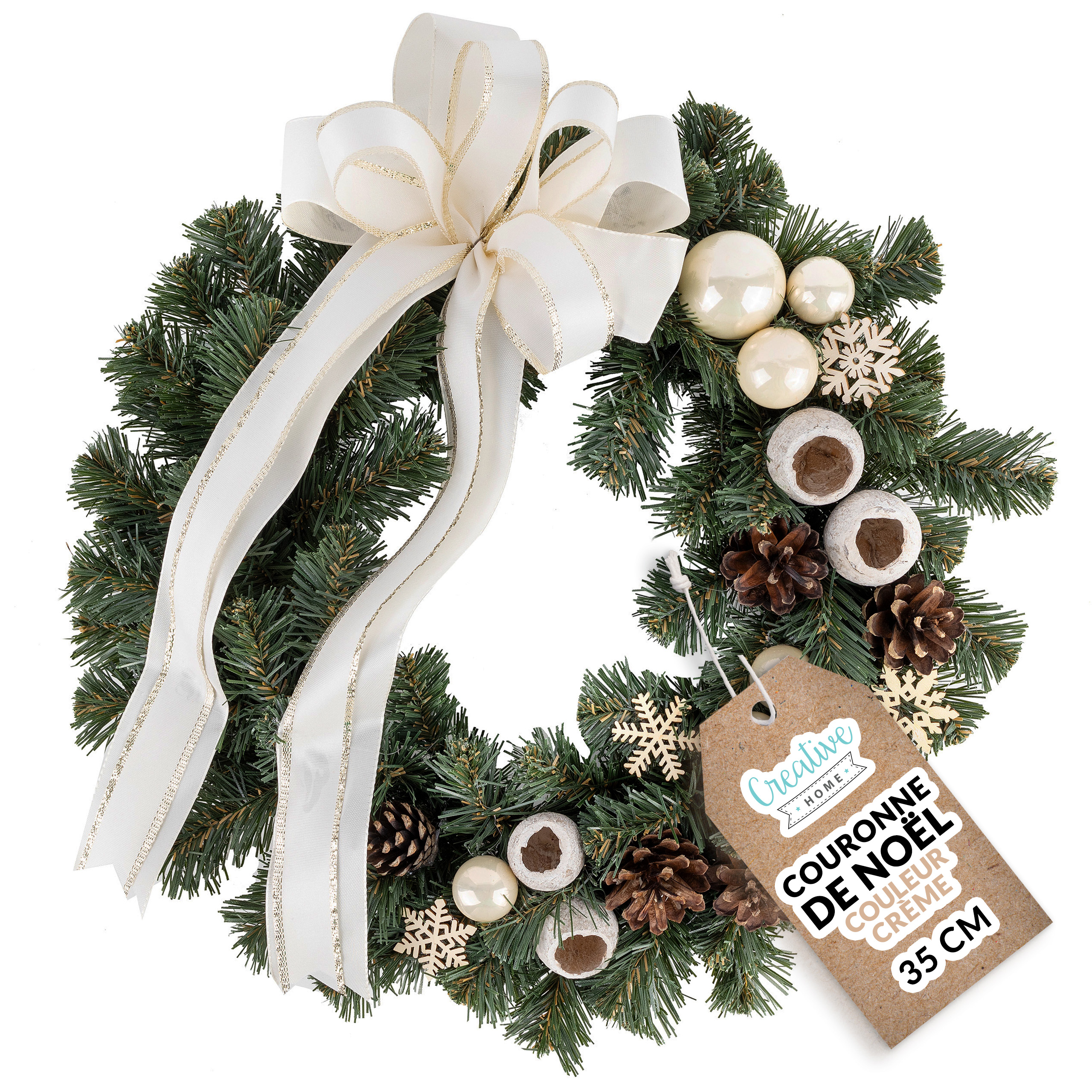 Creative Home Couronne de Noël Crème | Diamètre 35 cm | Couronne de Porte | Decoration Noel Exterieur | C