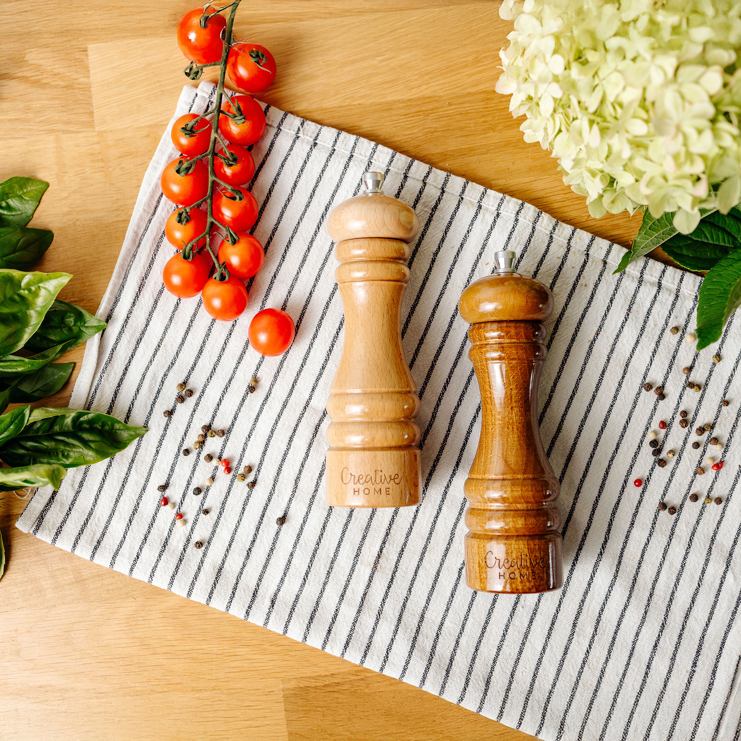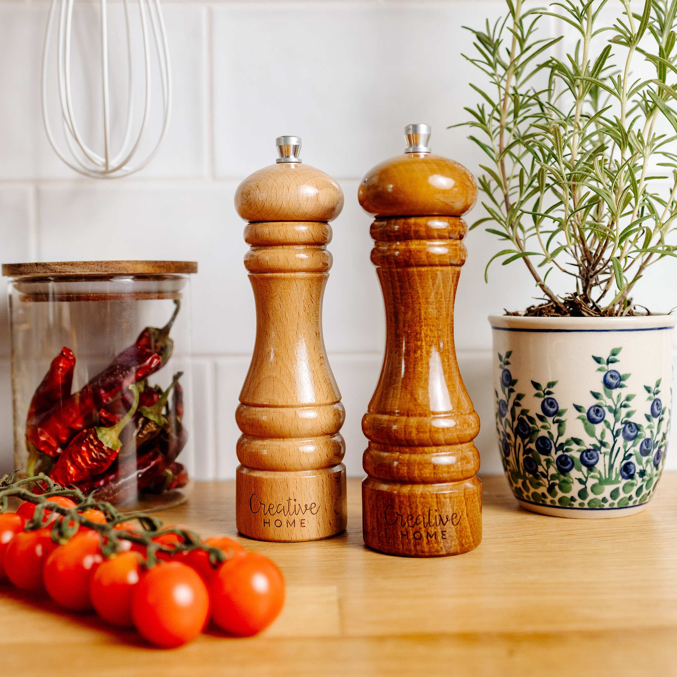 Creative Home Duo Moulin a Poivre et Sel Manuel en Bois | Inclus Mini Cuillère | Hauteur 18 cm | Salière