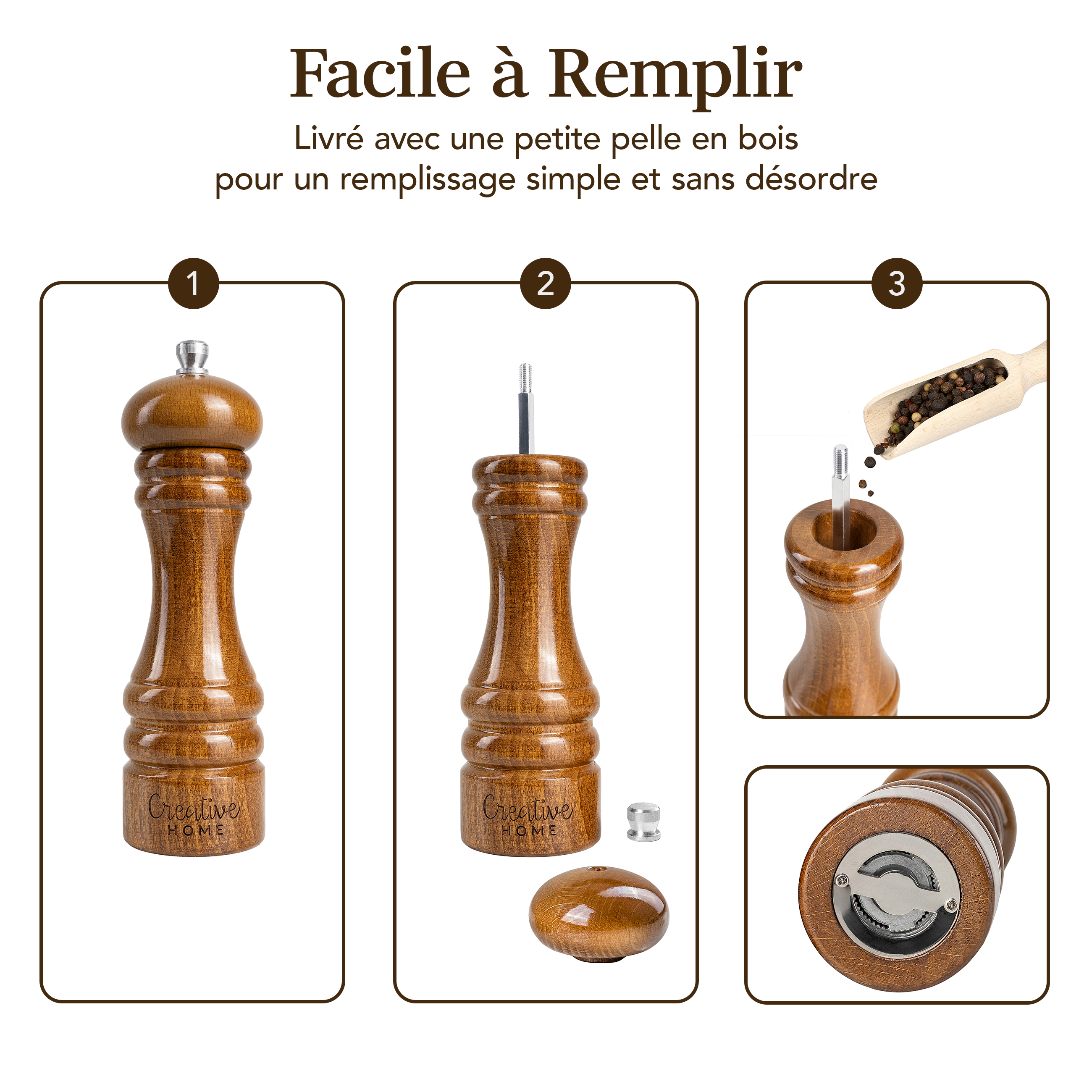 | Libellé | Creative Home Duo Moulin a Poivre et Sel Manuel en Bois | Inclus Mini Cuillère | Hauteur 18 cm | Salière et Poivrière de Cuisine | Moulin Sel Poivre |