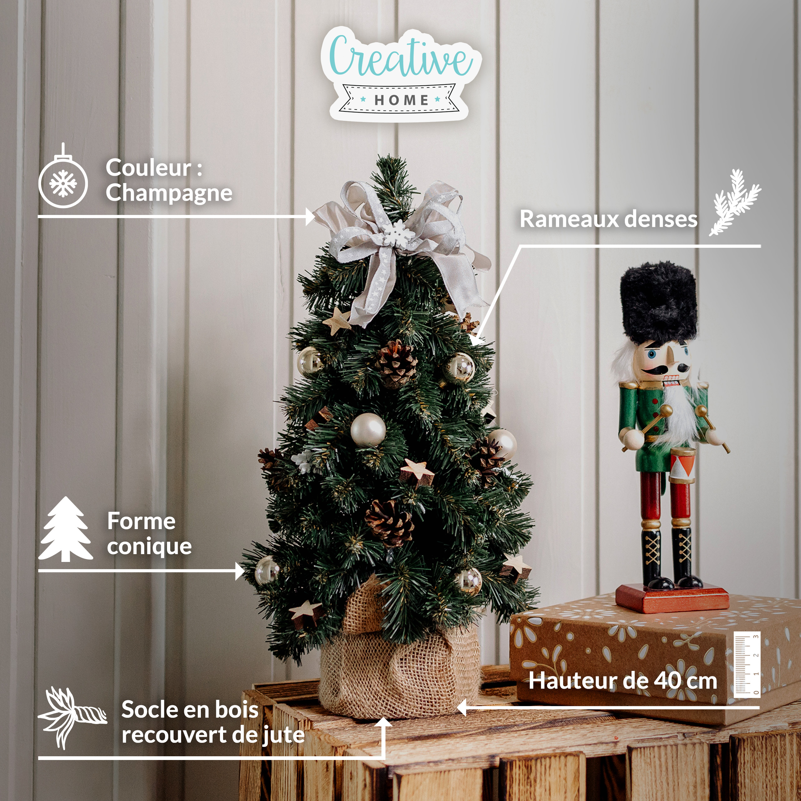 Libellé Creative Home Mini Sapin de Noel Artificiel Champagne 40 cm | Petit Sapin de Noel Artificiel | Décoration Noel Petit Bureau | Sapin de Noël Artificiel