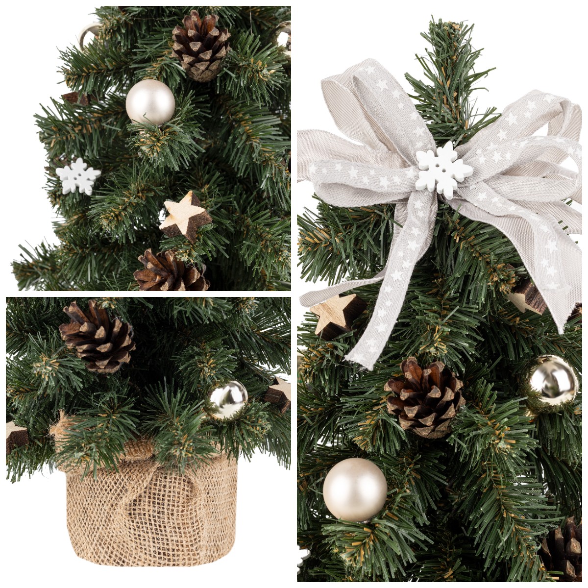 BELLE DÉCORATION - Notre arbre de Noël est habillé de belles décorations couleur champagne. Elles donnent au sapin un vrai aspect festif. Le sapin est un élémént indispensable pour Noel et rappelle à tous les bons moments passés en famille et entre amis durant la période des fêtes de fin d'année . Notre petit sapin décoré créera une atmosphère magique qui rendra votre famille et vos invités joyeux et heureux de ces moments passés ensemble. HAUTE QUALITÉ - Le sapin de Noël en forme de cône est de couleur vert foncé et possède des branches denses, ce qui lui donne un aspect naturel. De plus, il est stable grâce à sa base en bois recouverte de jute. Il vous servira durant de longues années, sans nuire à l'environnement. UNIVERSEL - Le sapin s'intègre parfaitement dans différents espaces, non seulement dans votre maison mais aussi dans les espaces publics. Il aura fière allure au bureau ou à la réception d'hôtel. C'est une pièce maîtresse pour parfaire votre centre de table de Noel, votre rebord de fenêtre ou votre table de chevet. Cette idée de petit sapin de Noël est idéale pour gagner de la place. Il peut également servir de décoration funéraire durable. IDÉE CADEAU - Vous cherchez une idée de cadeau unique pour les fêtes de fin d'année ? Surprenez vos proches avec nos petits sapins de Noel décorés ! Que ce soit pour un ami, un membre de la famille, un collègue ou même comme surprise secrète du Père Noël, ce cadeau apportera le sourire et rendra la période des fêtes encore plus spéciale. CONÇU AU ROYAUME-UNI & PRODUIT EN EUROPE - En tant que marque britannique, nous produisons nos produits dans l'Union Européenne, dont les normes sont parmi les plus strictes au monde. Nous sommes donc convaincus d'avoir un produit de la plus haute qualité sur le marché. Nos produits sont fabriqués à partir de matériaux naturels et non toxiques.