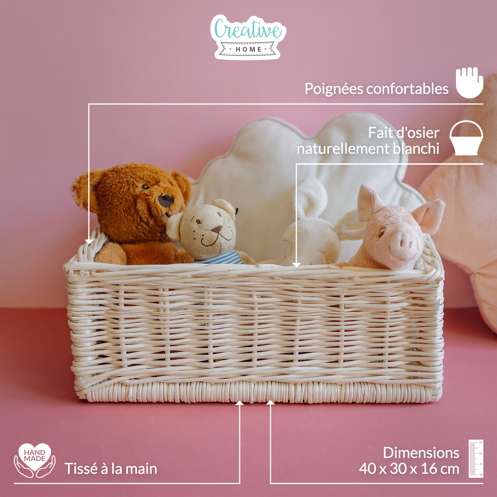 Creative Home Panier de Rangement en Osier Blanc | 40 x 30 x 16 cm (+/- 1cm) | Boite Rangement Osier | Pa