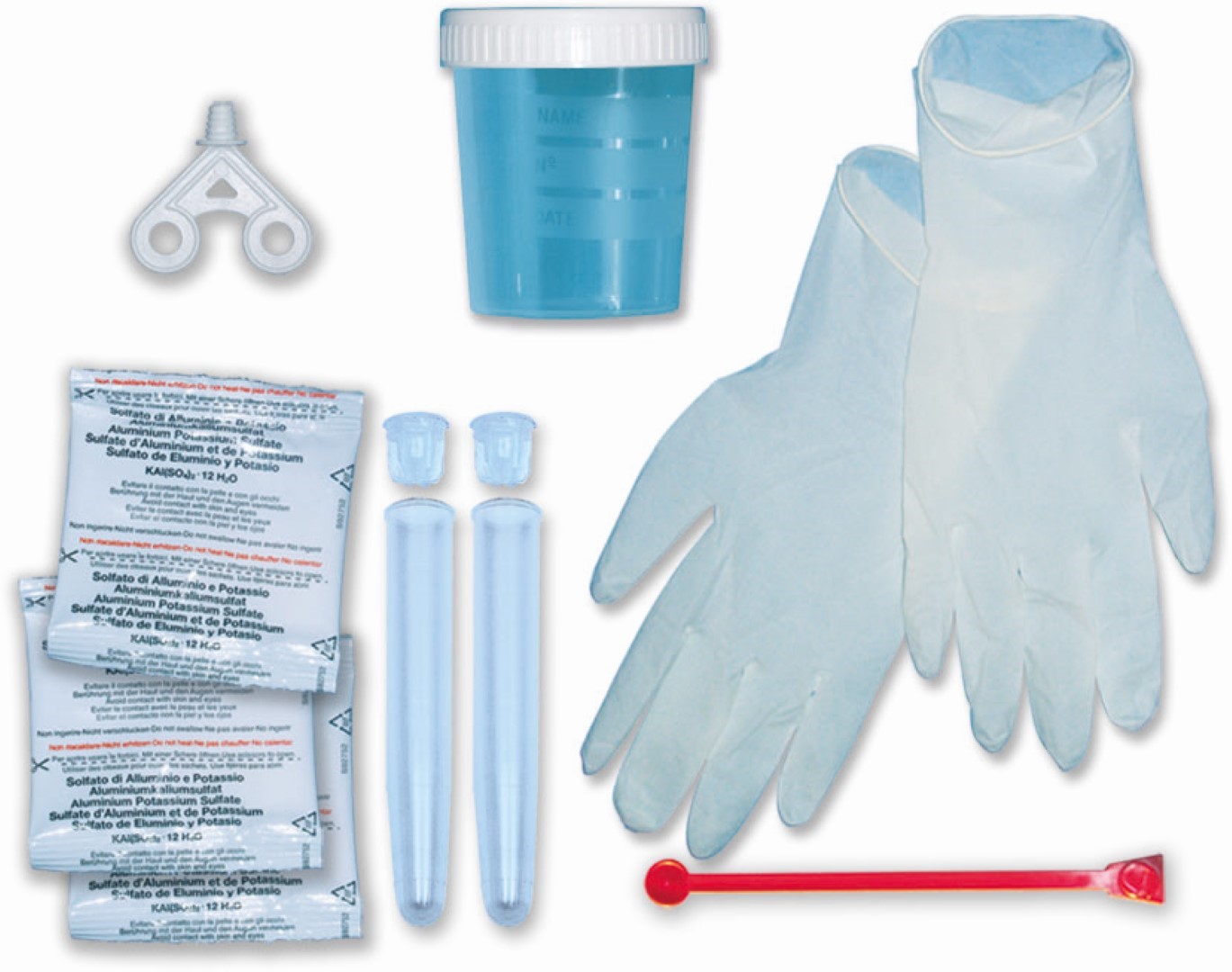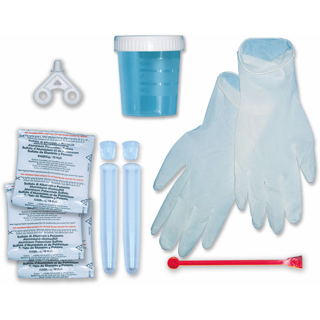 | La boîte contient | Contient 2 tubes en plastique avec bouchon + 3 sachets d'alun + 1 clé de sécurité + 1 paire de gants de protection + 1 spatule + 1 verre de 100 ml avec couvercle + 1 manuel illustré |