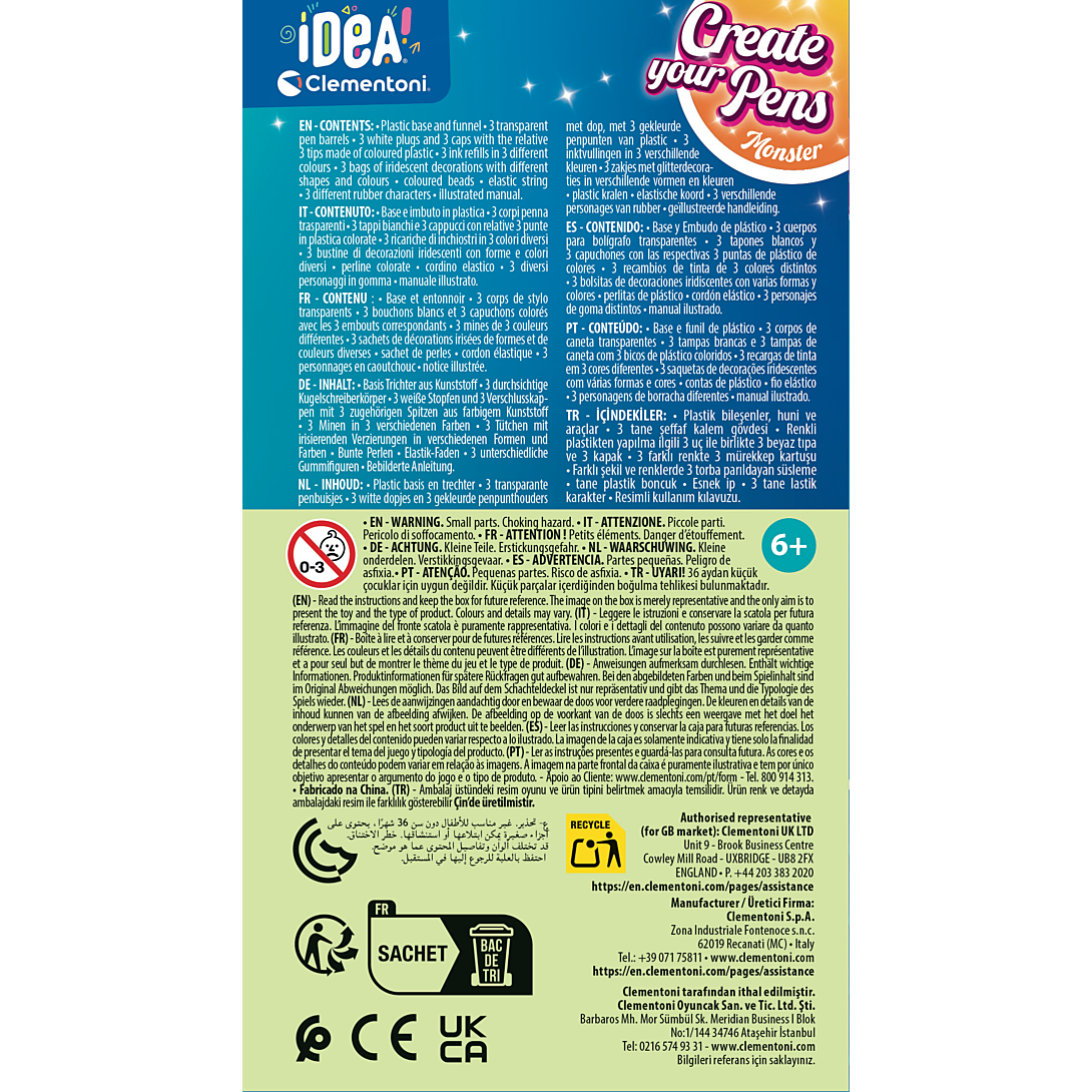 • Un coffret créatif original qui permet d’assembler 3 stylos et de les personnaliser avec différentes décorations sur le thème des monstres. • Le coffret contient 3 stylos à assembler, 4 encres de couleurs différentes, 3 personnages et tous les accessoires pour les décorer. • Ce jeu permet de créer et de personnaliser ses stylos avec plein d’accessoires et de décorations variées. • Stimule la créativité et l'imagination.