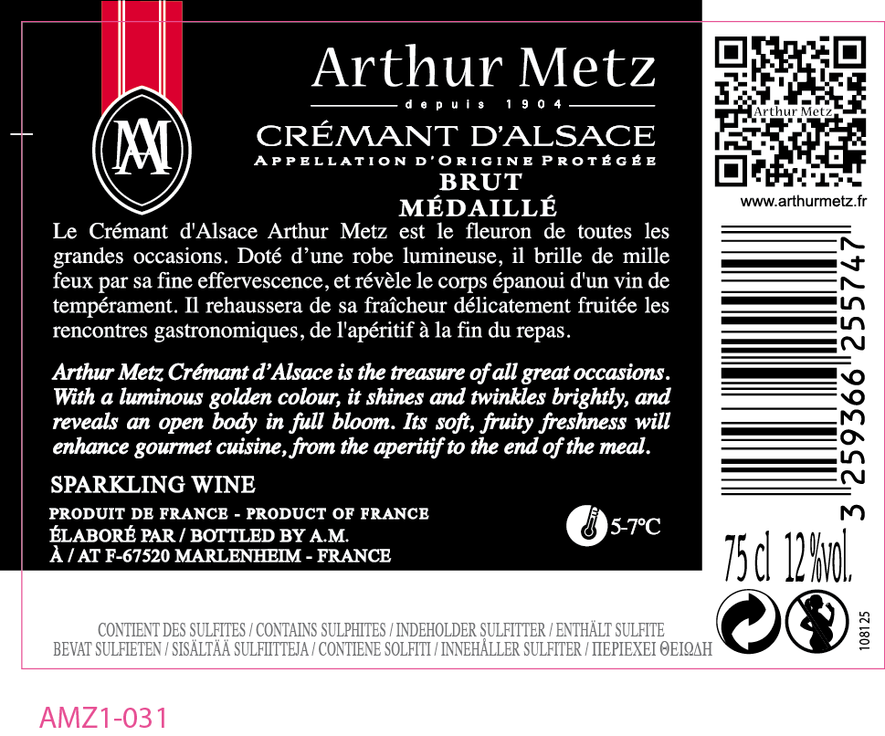 | Libellé | Crémant d'Alsace AOP Arthur Metz - Brut - 75 cl |