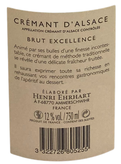 | Libellé | Crémant d'Alsace AOP Henri Ehrhart Excellence - Brut - 75 cl |