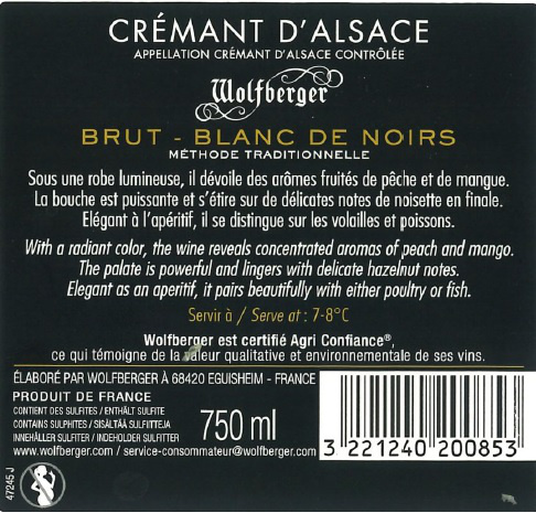 | Libellé | Crémant d'Alsace AOP Wolfberger - 75 cl |