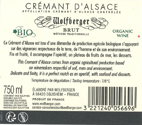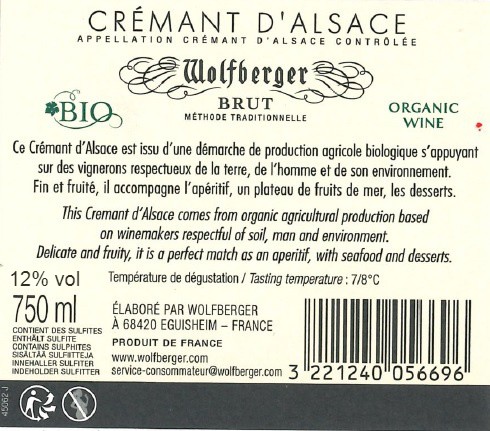 | Libellé | Crémant d'Alsace AOP Wolfberger BIO - Brut - 75 cl |