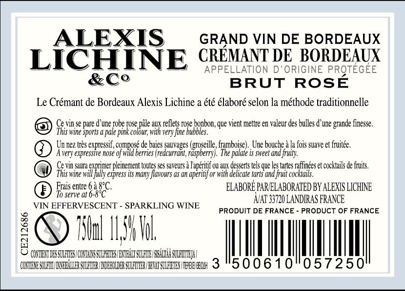 | Libellé | Crémant de Bordeaux AOP - Brut Rosé - 75 cl |